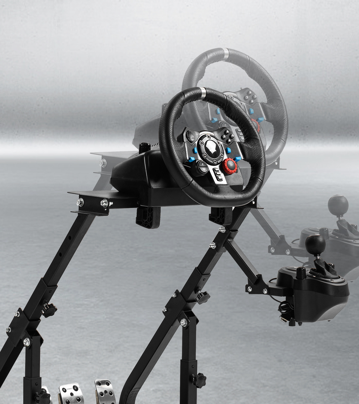 Steering wheel platform can be freely adjusted angle: 0-5 °, and put yourself in a comfortable game environment to win the game, according to their needs to adjust the height of the bracket, to find the right comfortable position