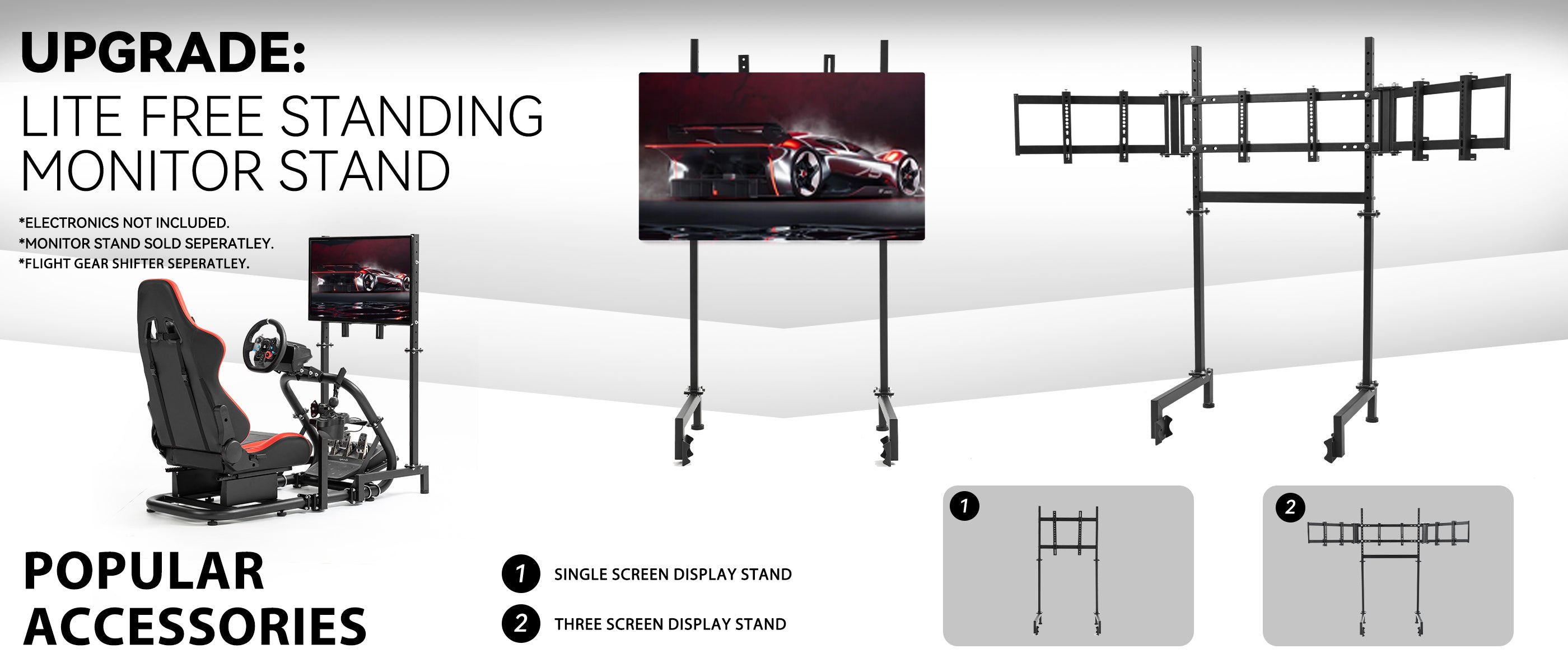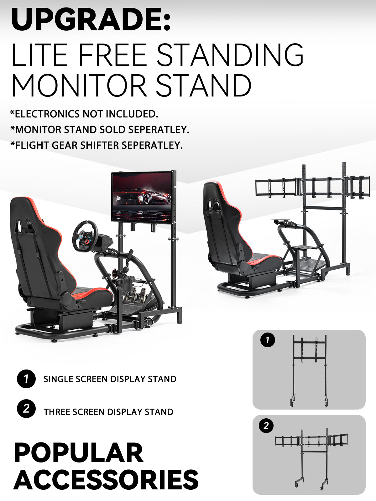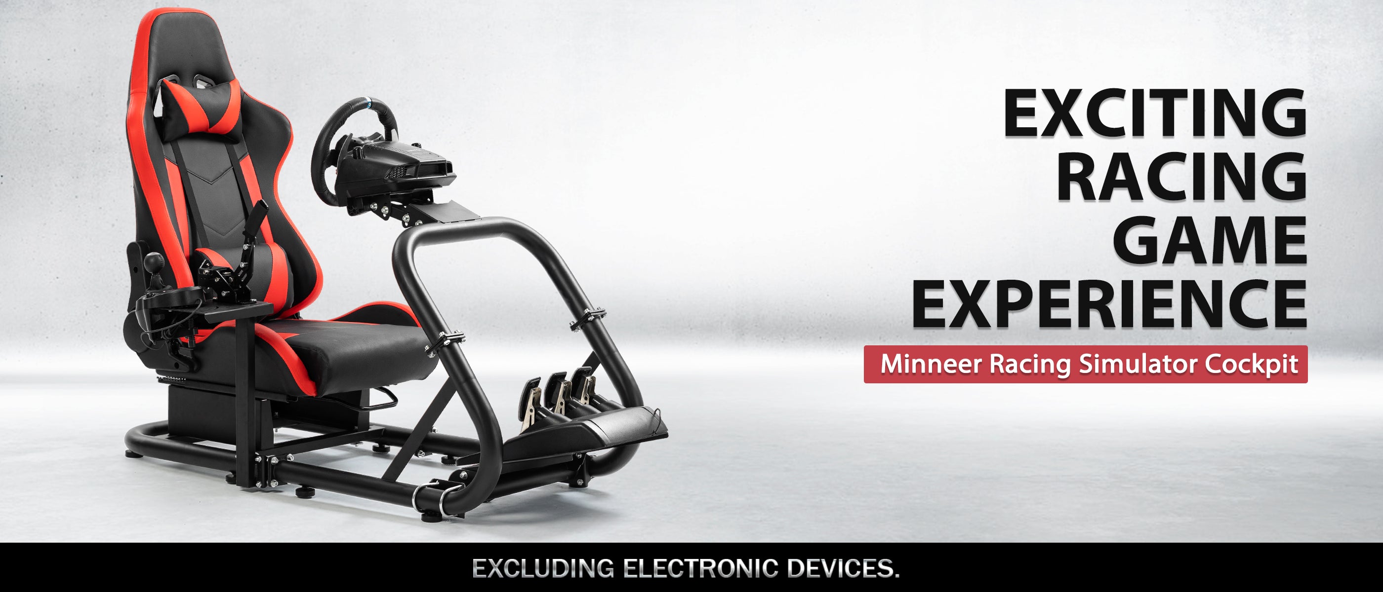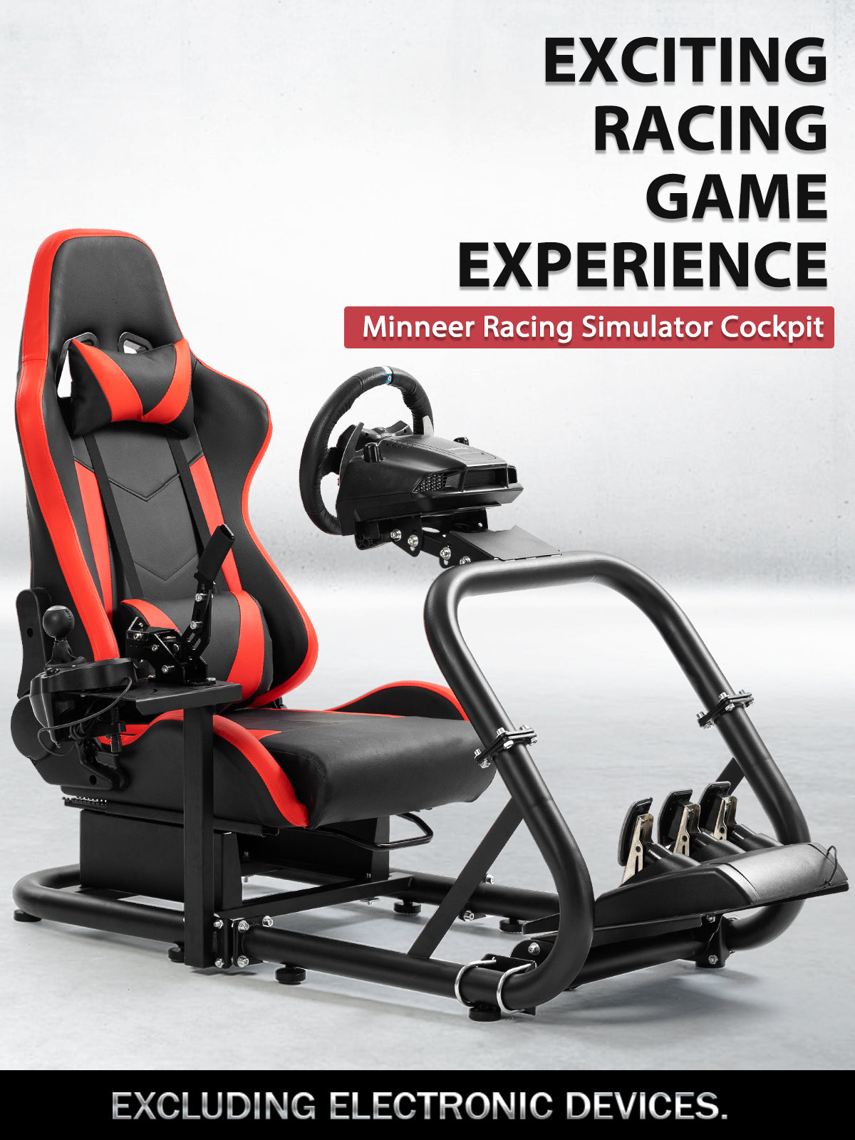 Minneer Racing Simulator Cockpit Pro with Seat Professional Sim Racing Wheel Frame Large Round Tube Fully Adjustable without Pedal Wheel and Handbrake