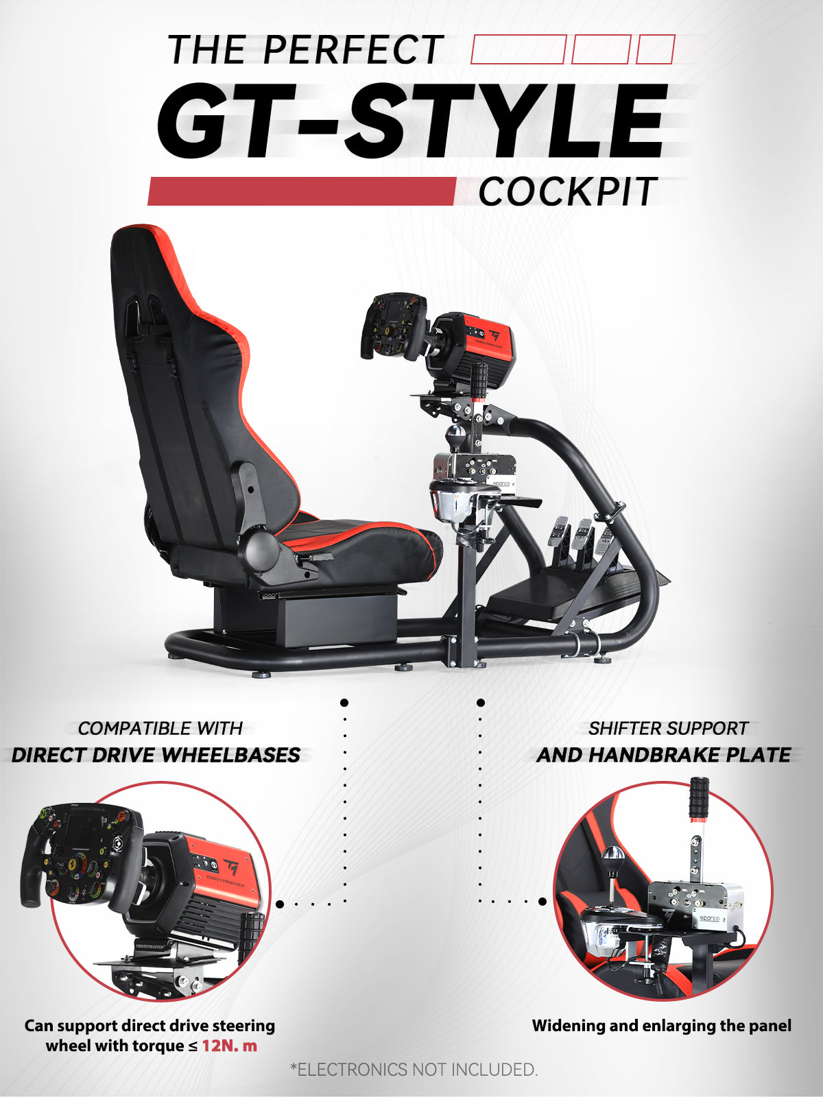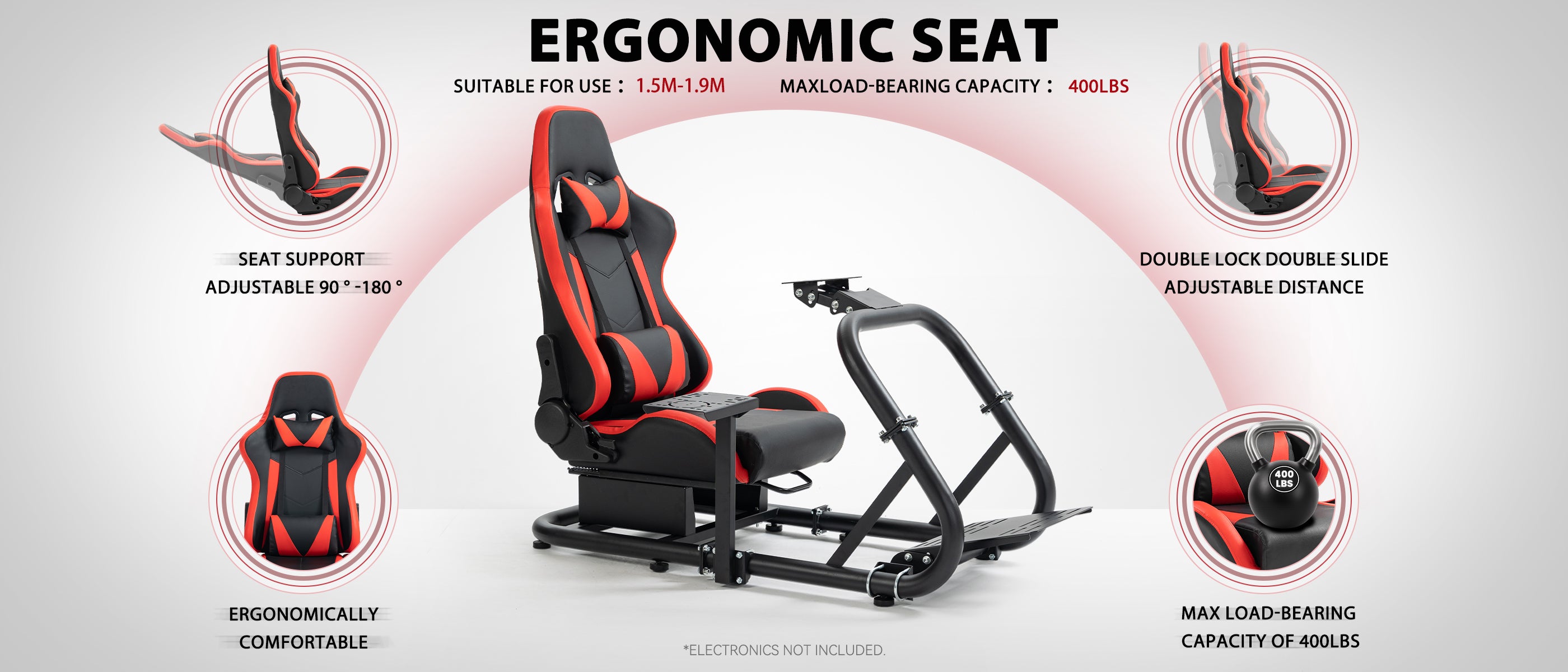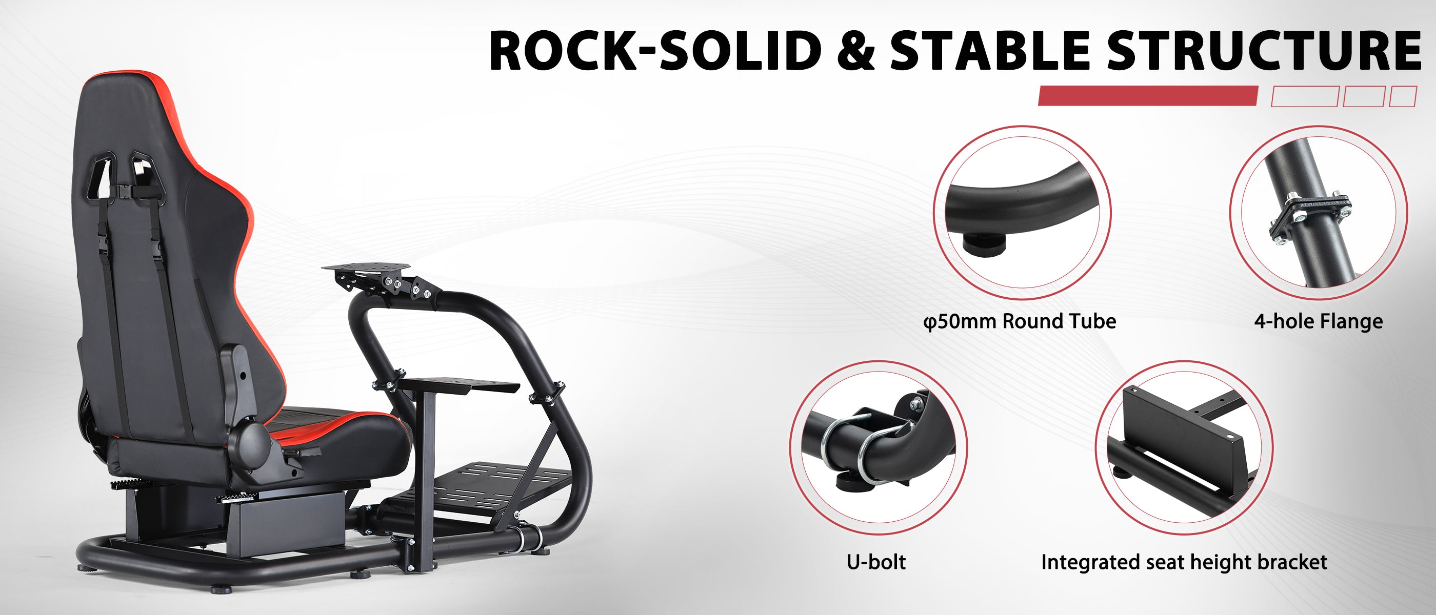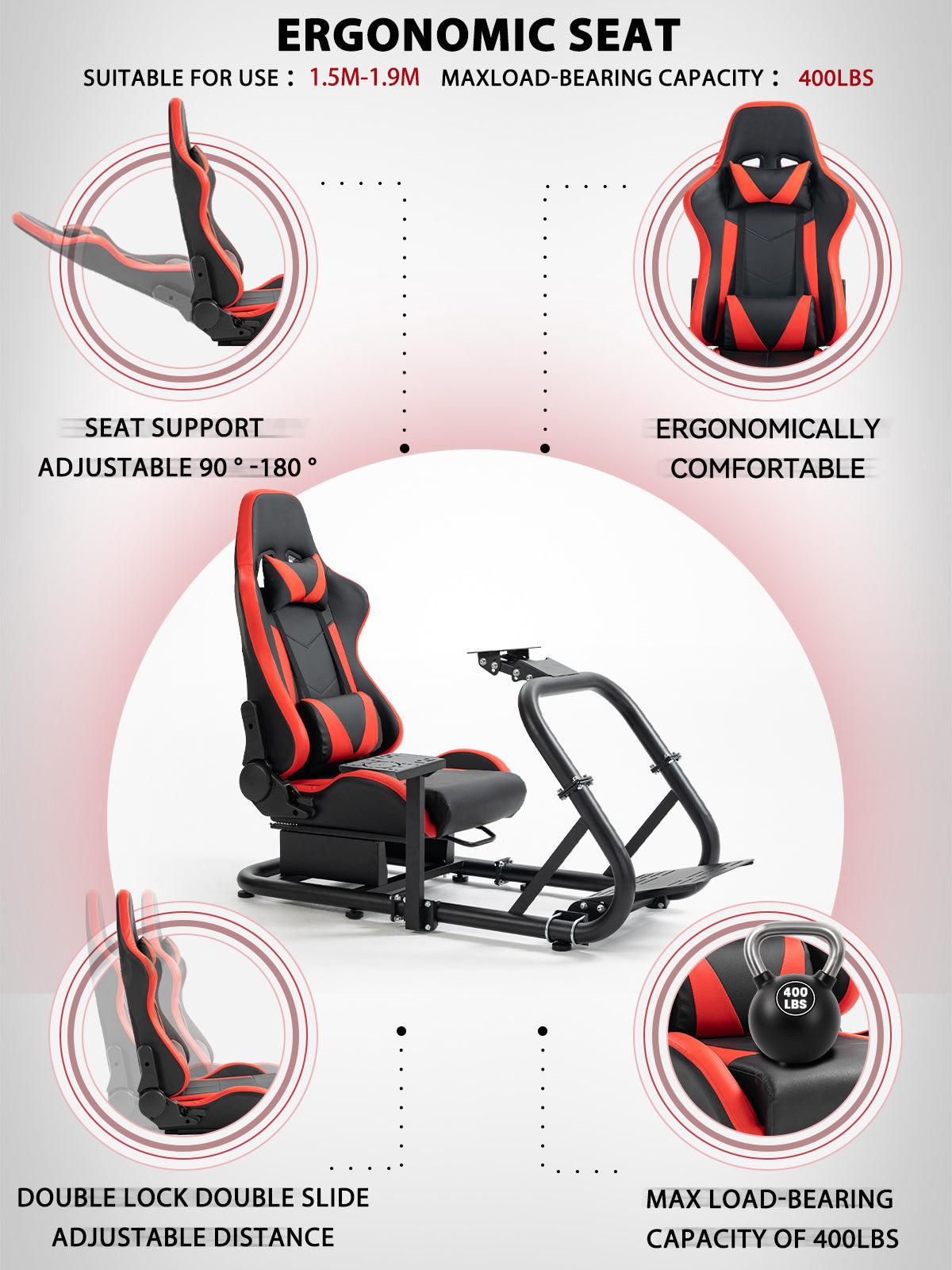 【Multi-Angle Adjustment】 Steering wheel platform supports two-stage height and angle adjustment, with customizable pedal angle and shift lever position for optimized comfort.