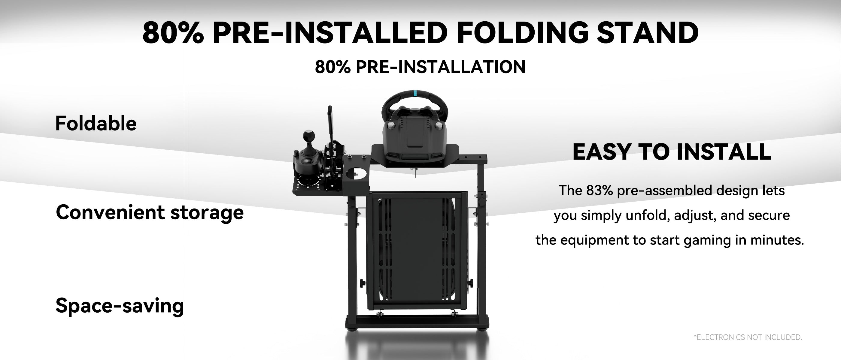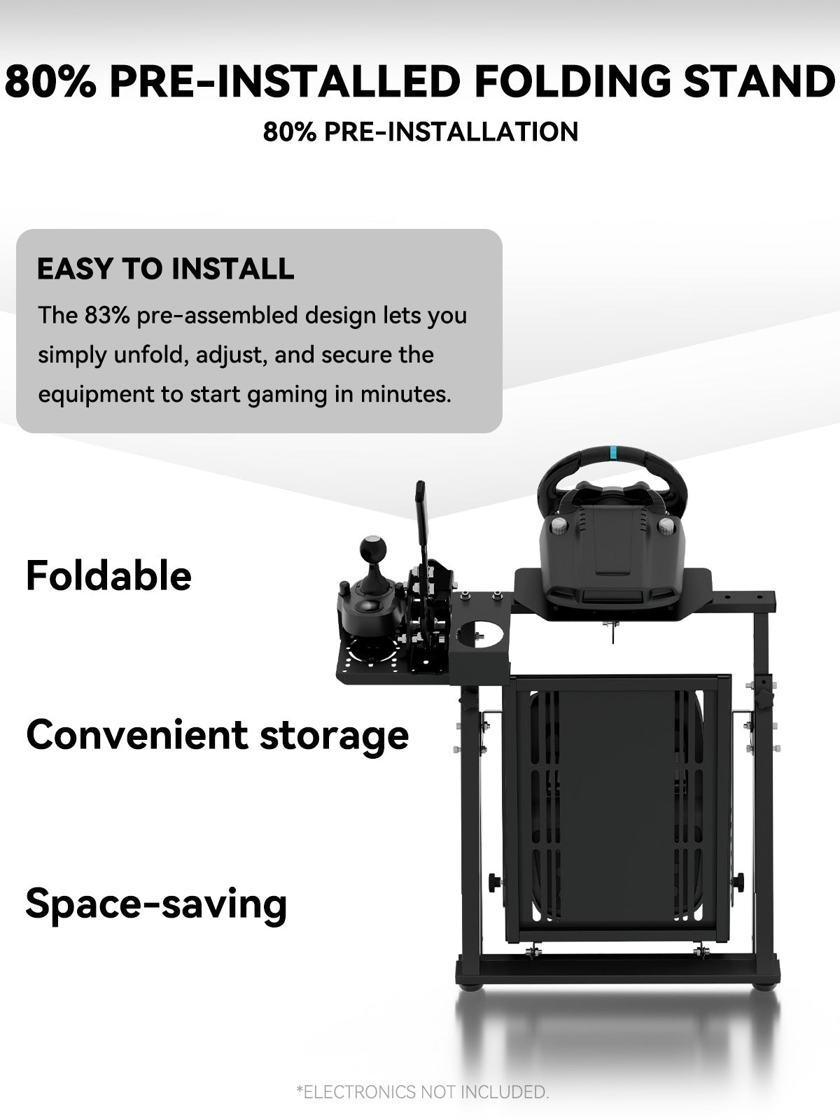 【Ultra-Fast 5-Second Folding】 Effortlessly fold the entire racing simulator stand in seconds post-race. This space-saving design is perfect for gamers with limited room, allowing easy storage while keeping your passion ready to race.