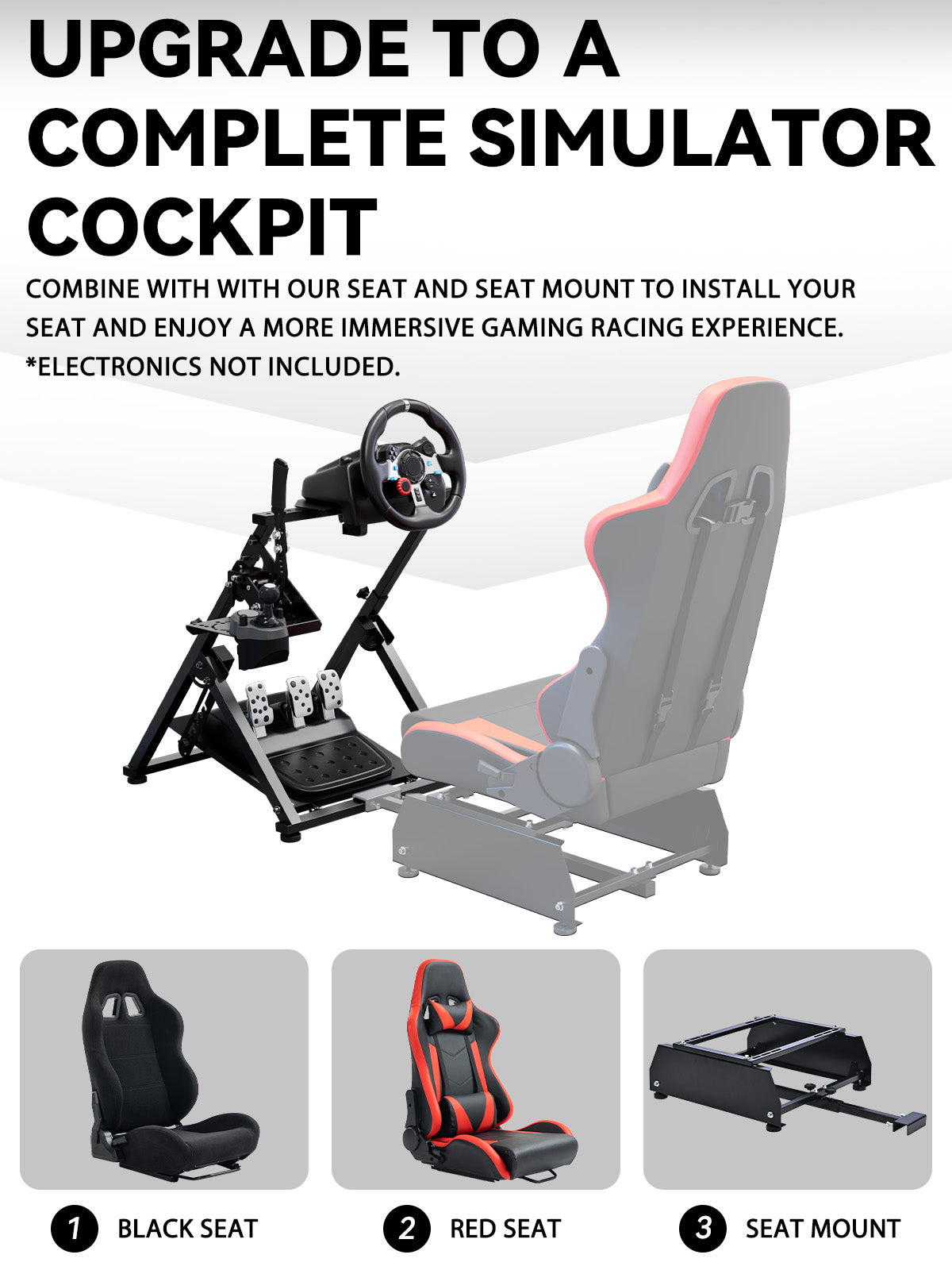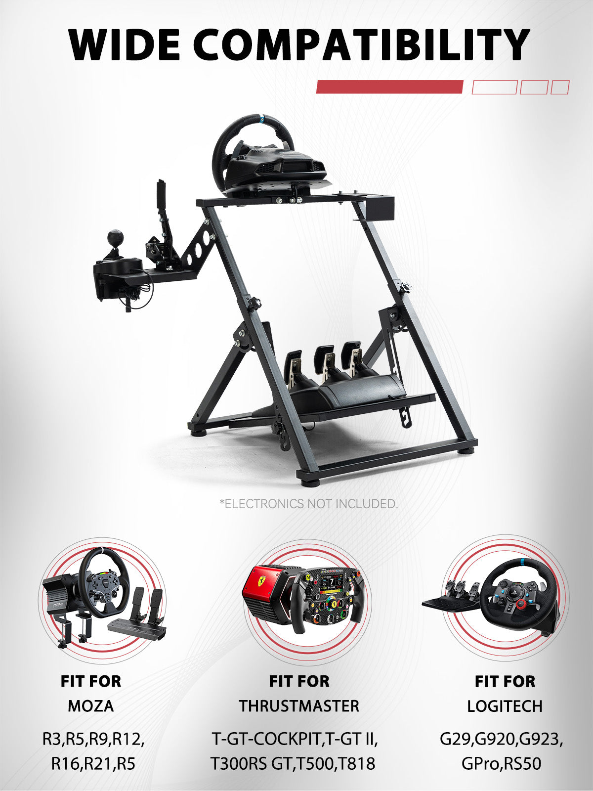 【Universal Compatibility】 The driving cockpit stand seamlessly integrates with most popular racing gear, including Logitech G920, G29, G923 and Thrustmaster T248, T300RS GT, ensuring broad compatibility with major market brands. Not Included Wheel Pedal