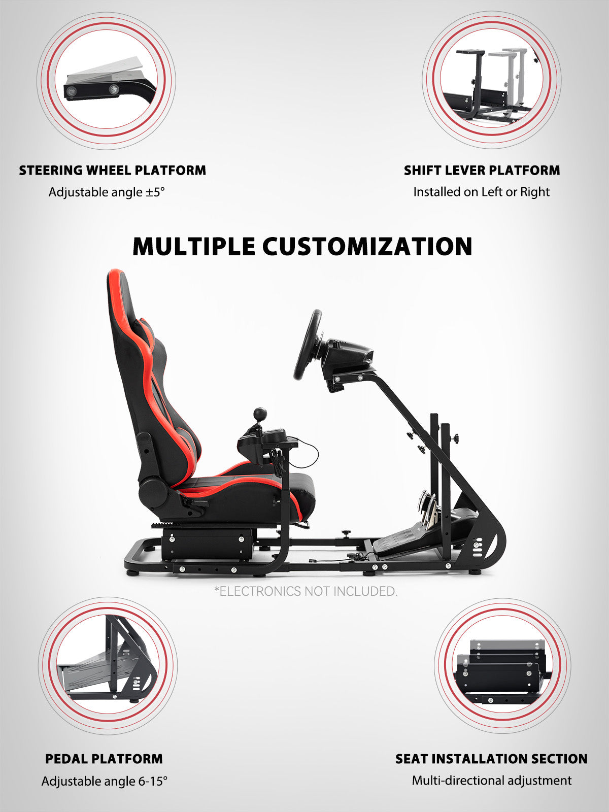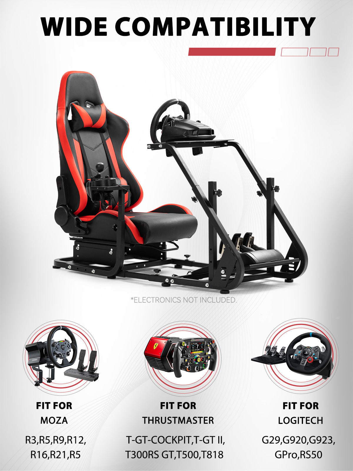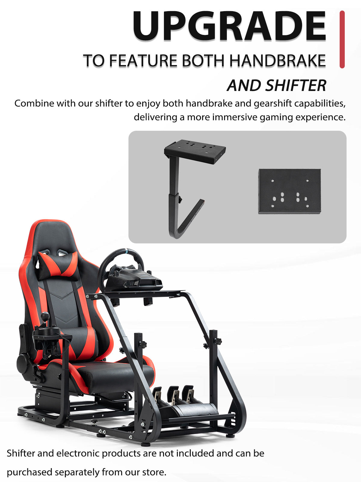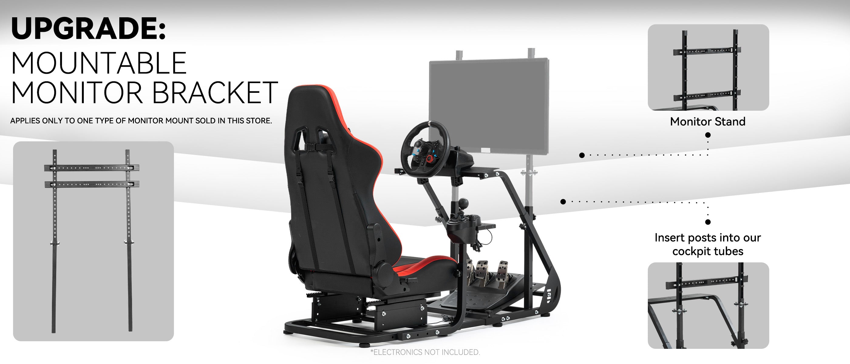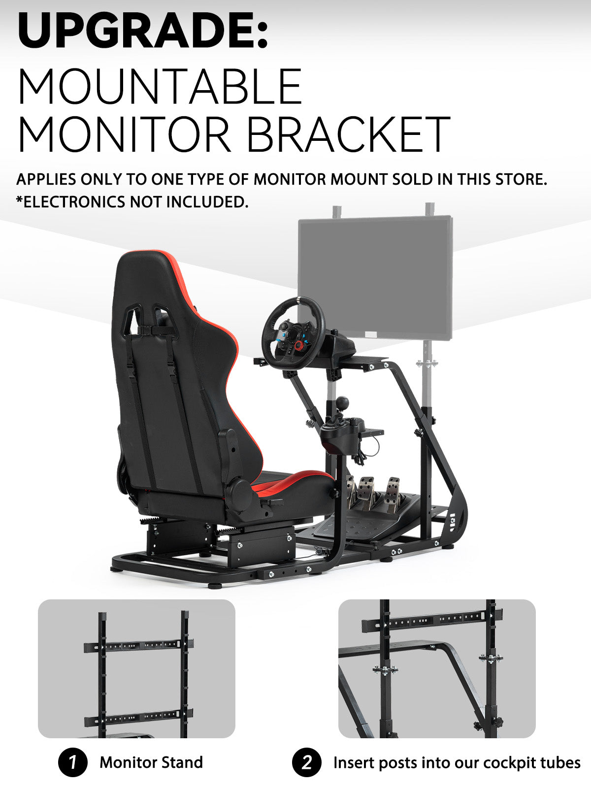 【Wide Compatibility】Works with Logitech and Thrustmaster wheels. Upgrade-ready for monitor mounts. Note: Wheel, shifter, and pedals not included.