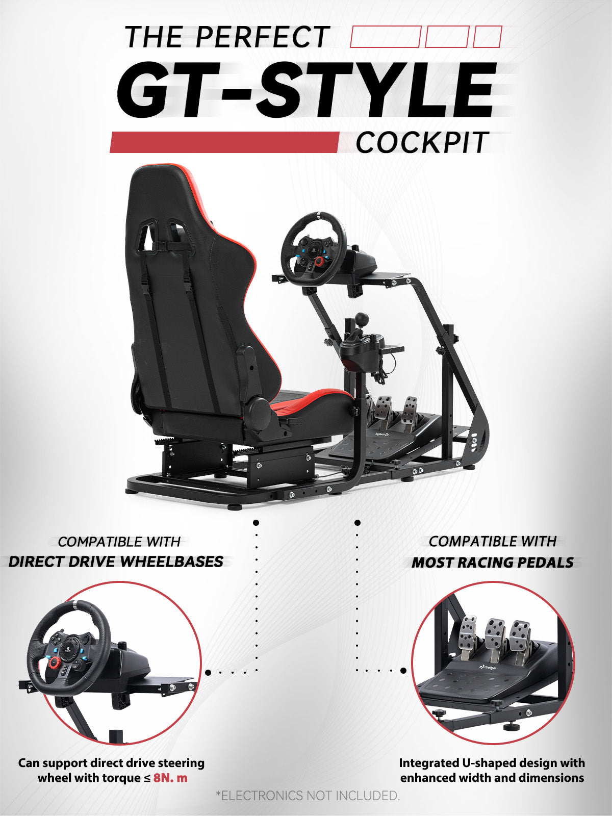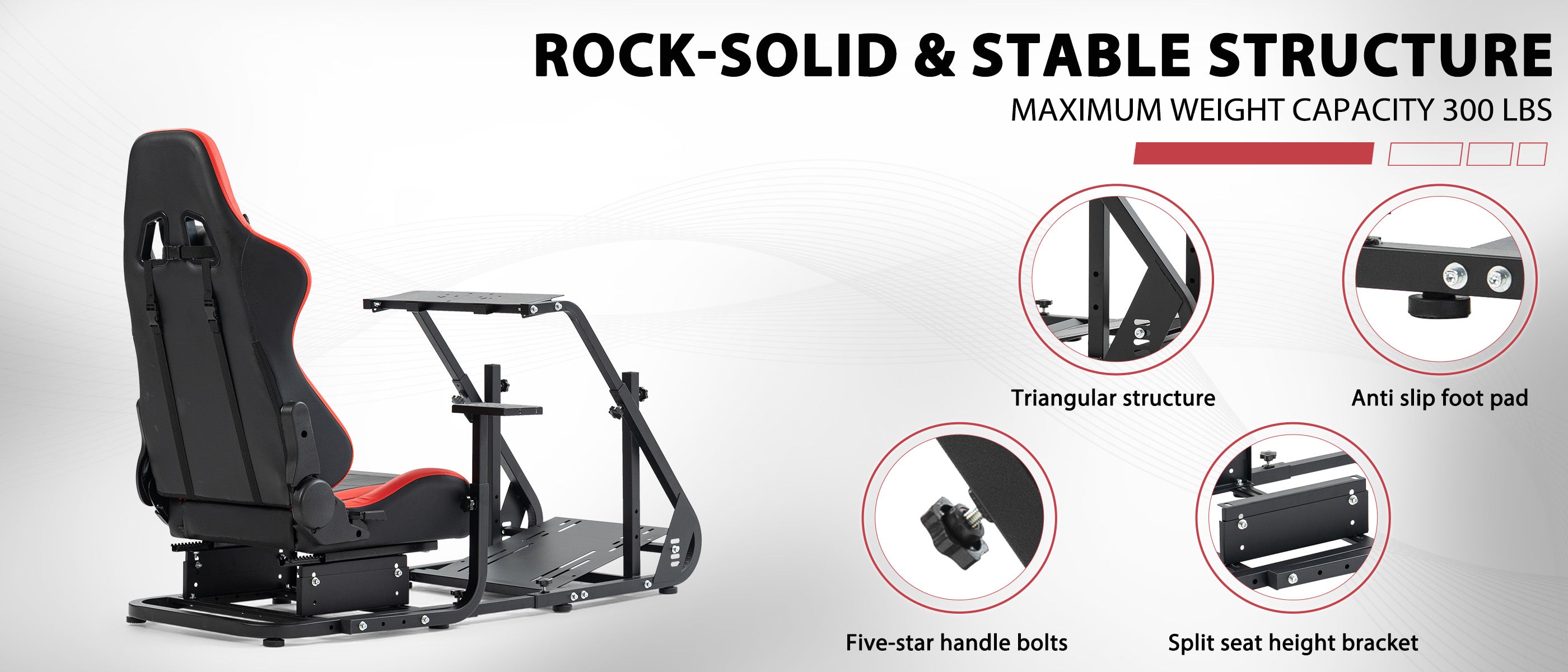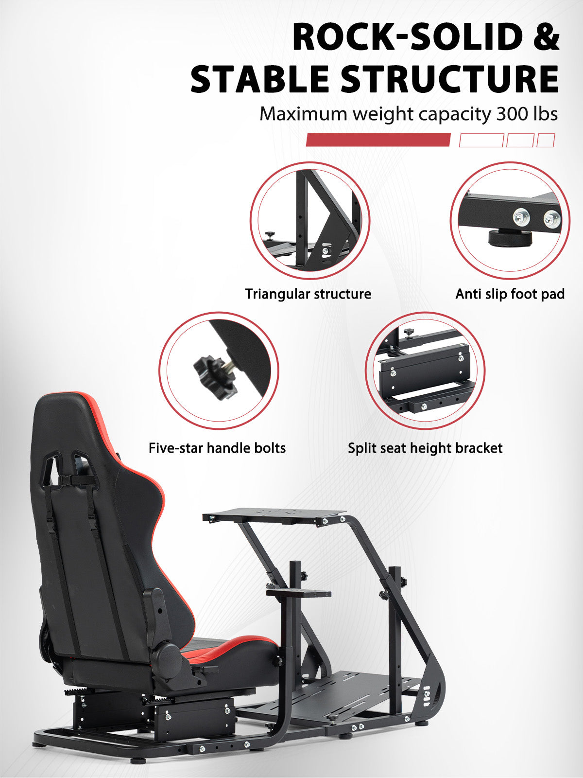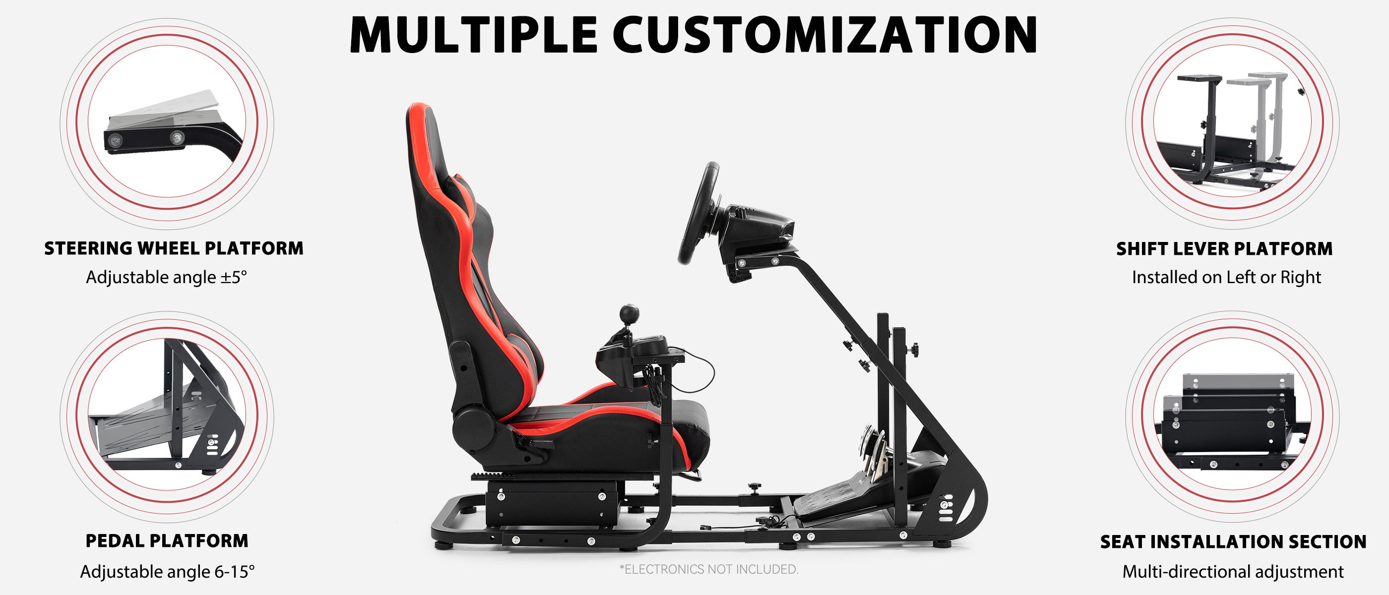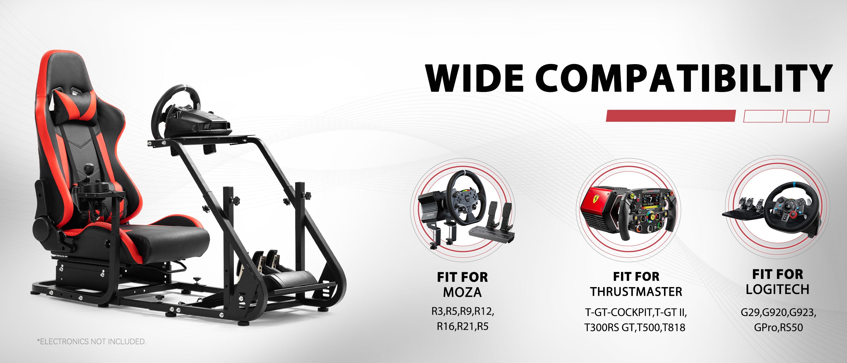 【Wide Compatibility】Works with Logitech and Thrustmaster wheels. Upgrade-ready for monitor mounts. Note: Wheel, shifter, and pedals not included.