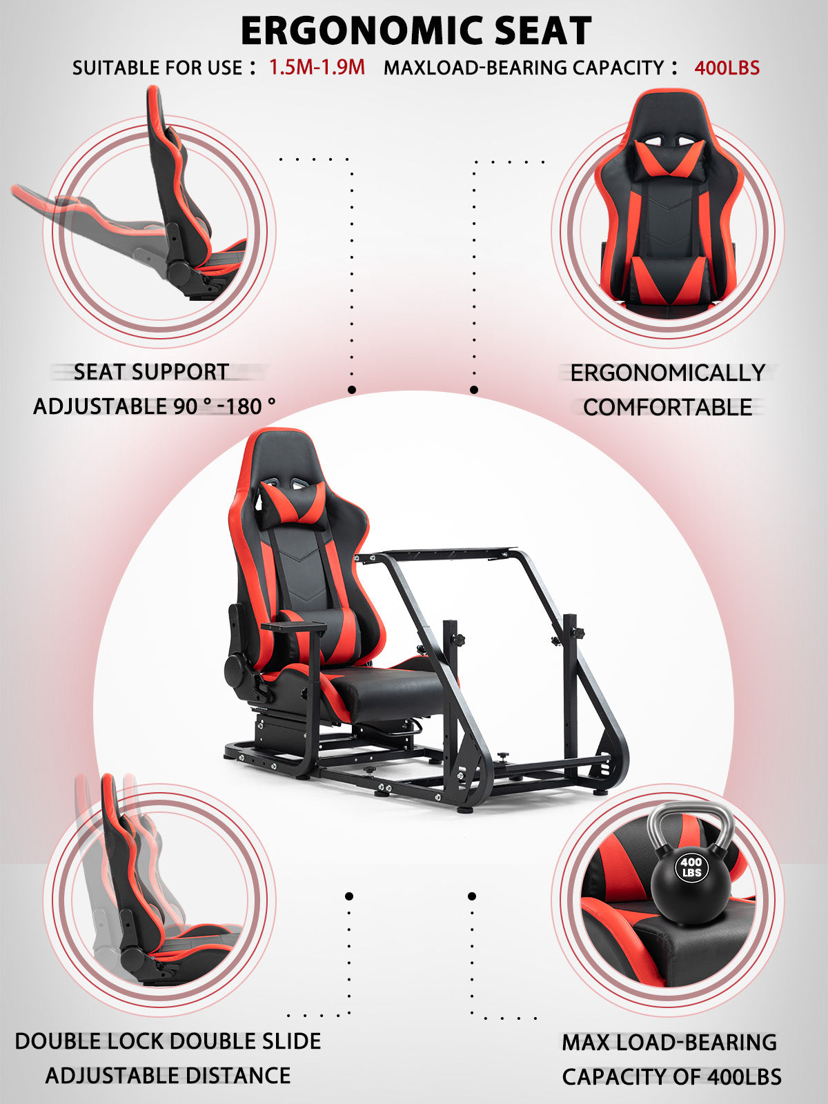 【Universal Fit】Seat with sliding rails, 3-level height support, and 90-180° backrest adjustment fits all users.