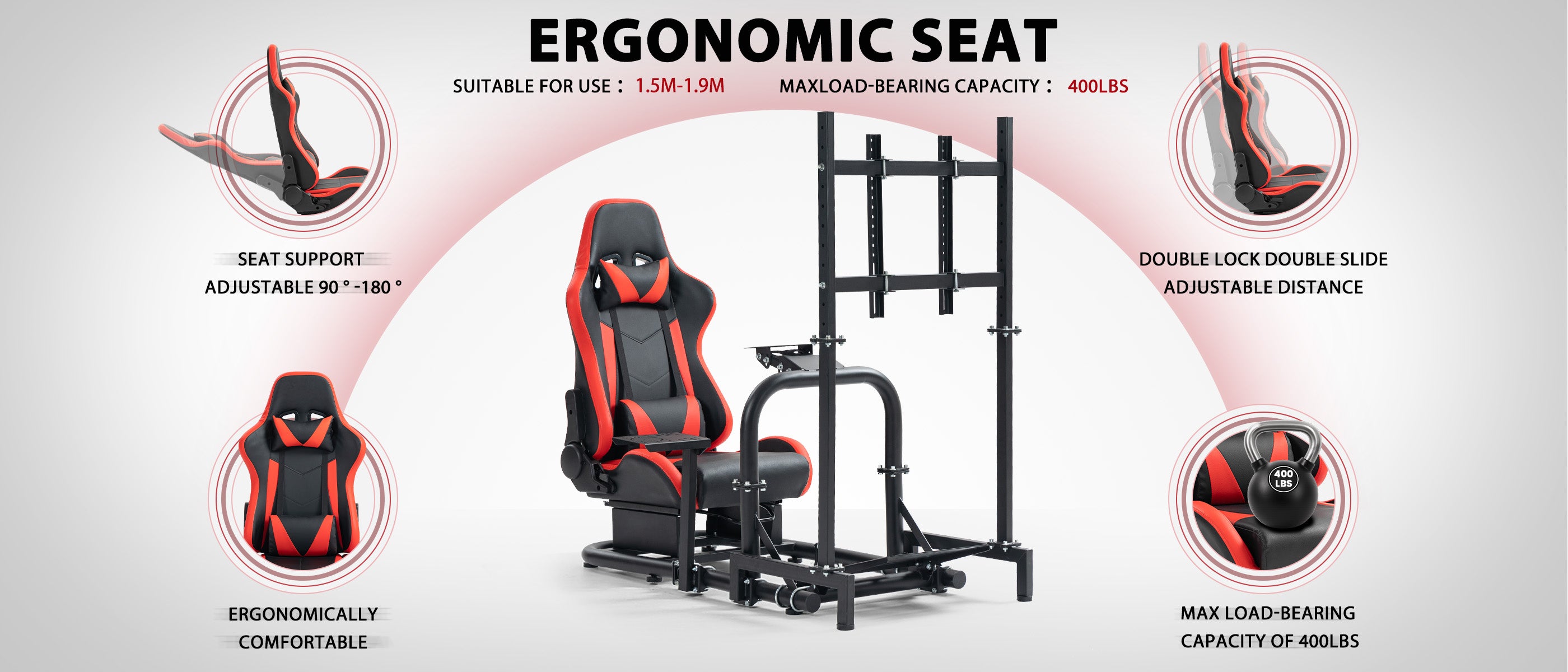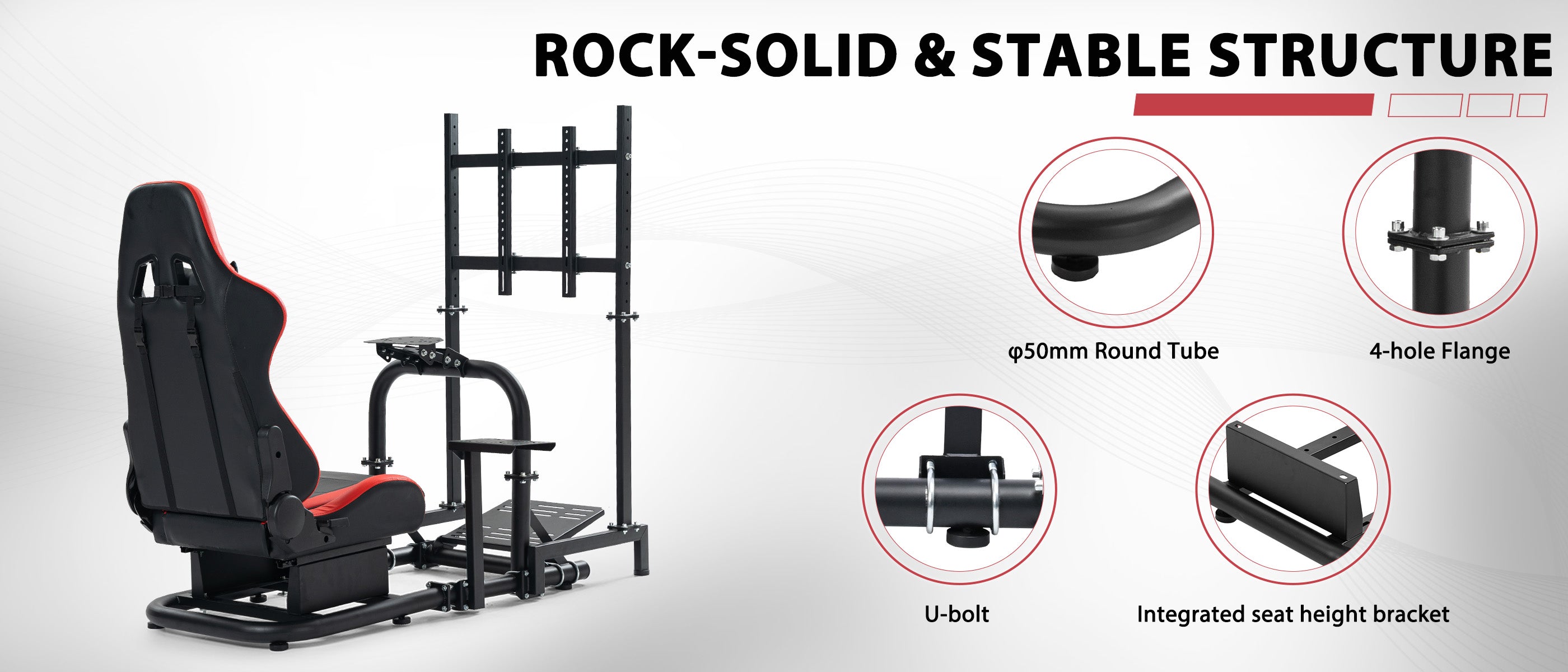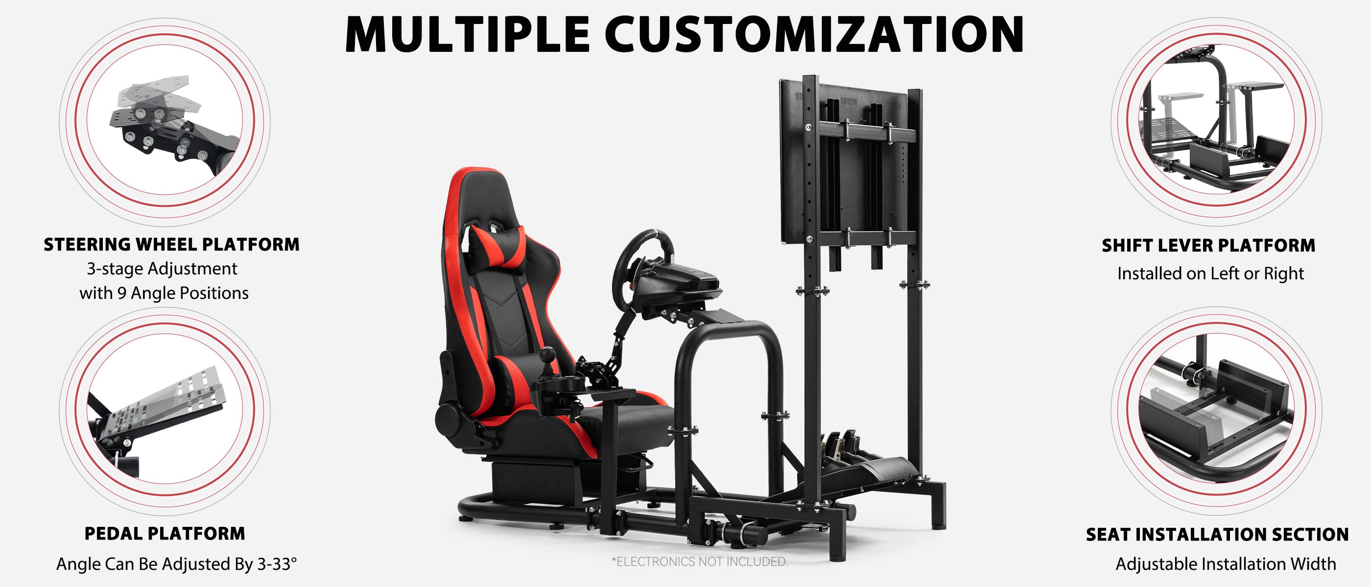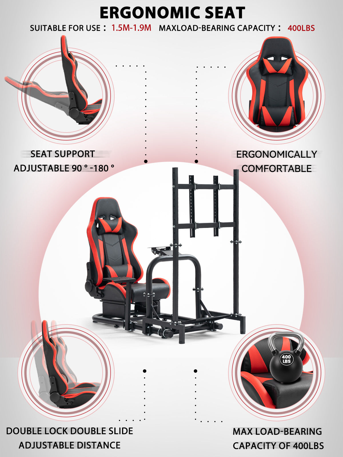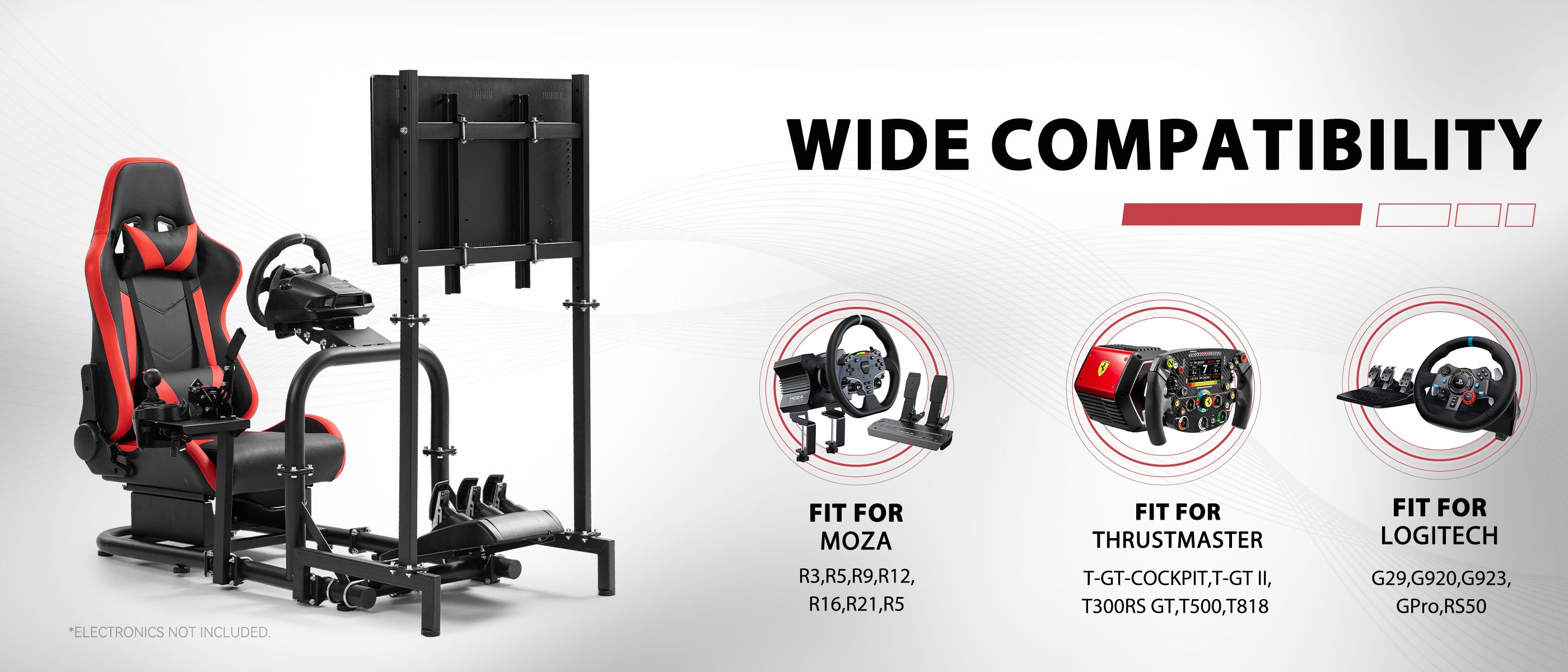 【Leading-edge Monitor Mount 】Heavy-duty monitor mount supports 27- to 65-inch screens up to 220 lb, with flexible height/distance adjustments to address visual fatigue during endurance racing simulations