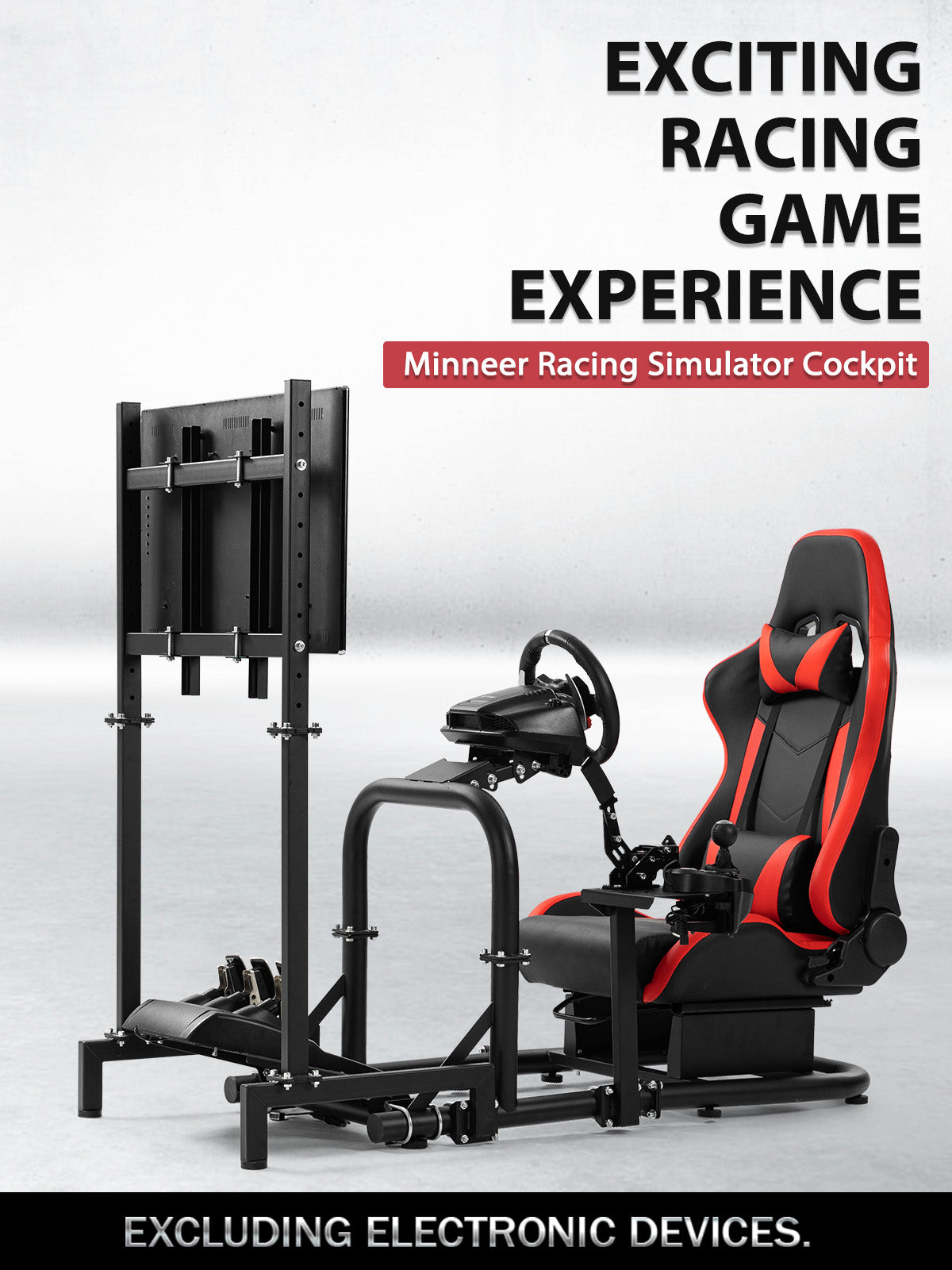 Minneer Racing Simulator Cockpit with Red Seat and TV Stand,Stability Upgrade&Adjustable, Fit for Logitech/Thrustmaster/Fanatec G27,G29,G920,G923,T300RS, T248, Wheel Frame,No Steering Wheel,Pedal,Handbrake