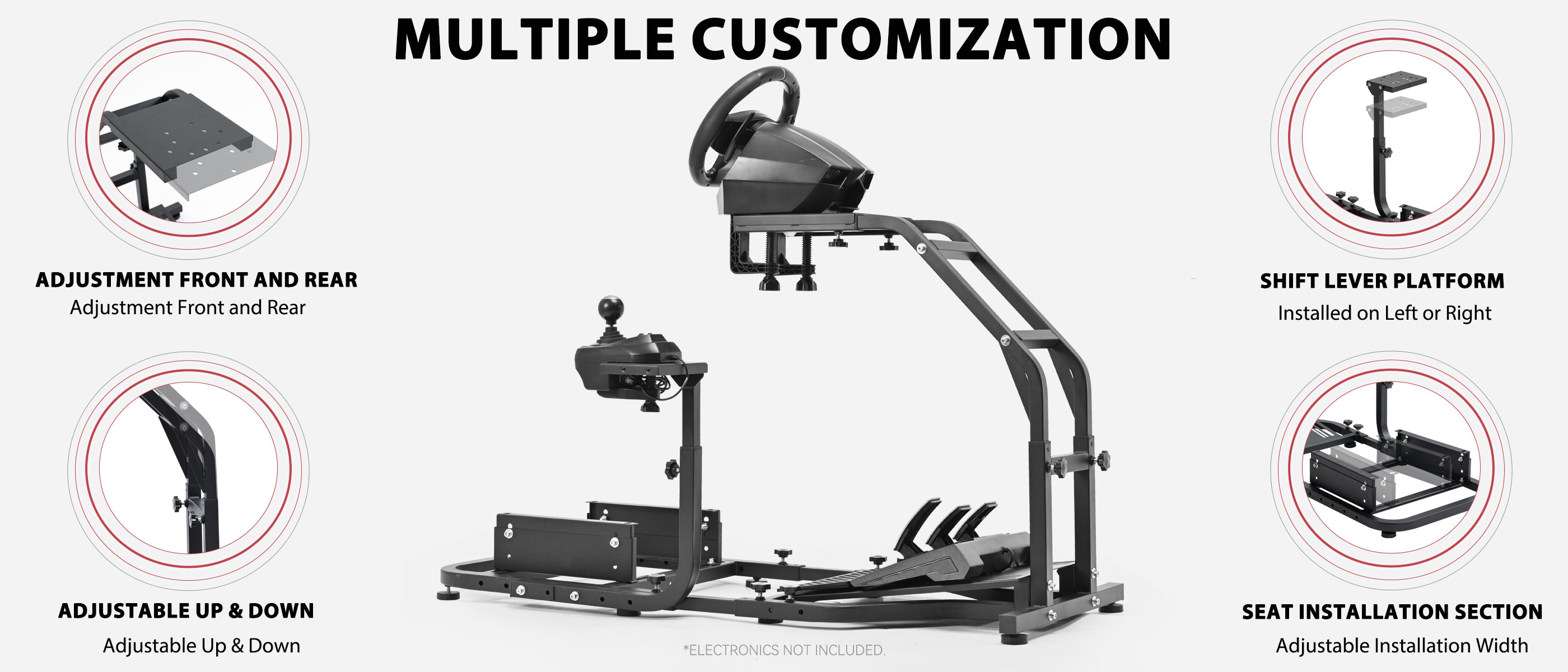 Free Adjustment】 The height and length of the racing simulator's cockpit can be adjusted, the gearshift lever supports left and right movement, and the height of the seat frame can also be adjusted. Various parameters can be flexibly combined to create an exclusive driving position tailored for different sizes of racers