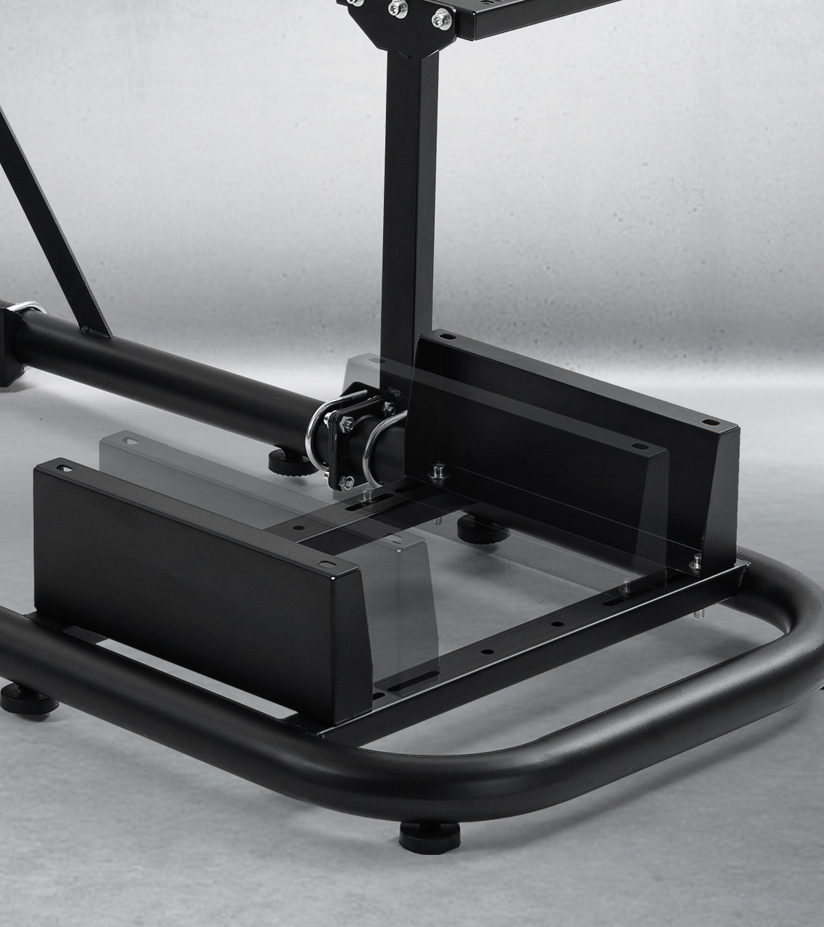 |High Stability|The Wheel Stand is designed with a heavy-duty frame that provides high load capacity and torsional force control. The bottom of the racing base is equipped with rubber feet that grip the ground firmly and provide maximum stability.