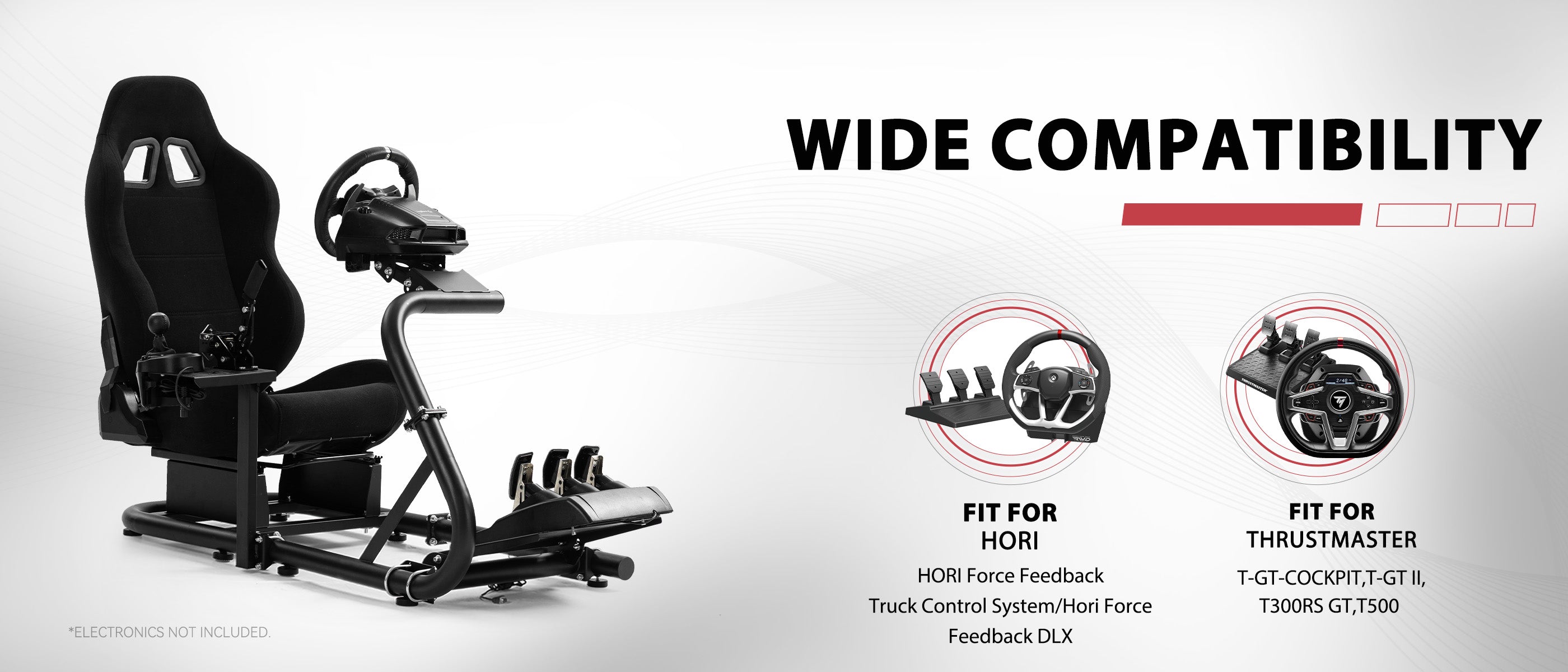 The steering wheel platform supports 6 adjustable positions, and the angle can be adjusted from 0-45°. This is a universally designed steering wheel frame that fits almost all Logitech, fanatec, trustmaster series racing wheels, pedals, and gears, especially the Logitech G27, g29, and g920 racing wheels, trustmaster t300rs, and TX f458.