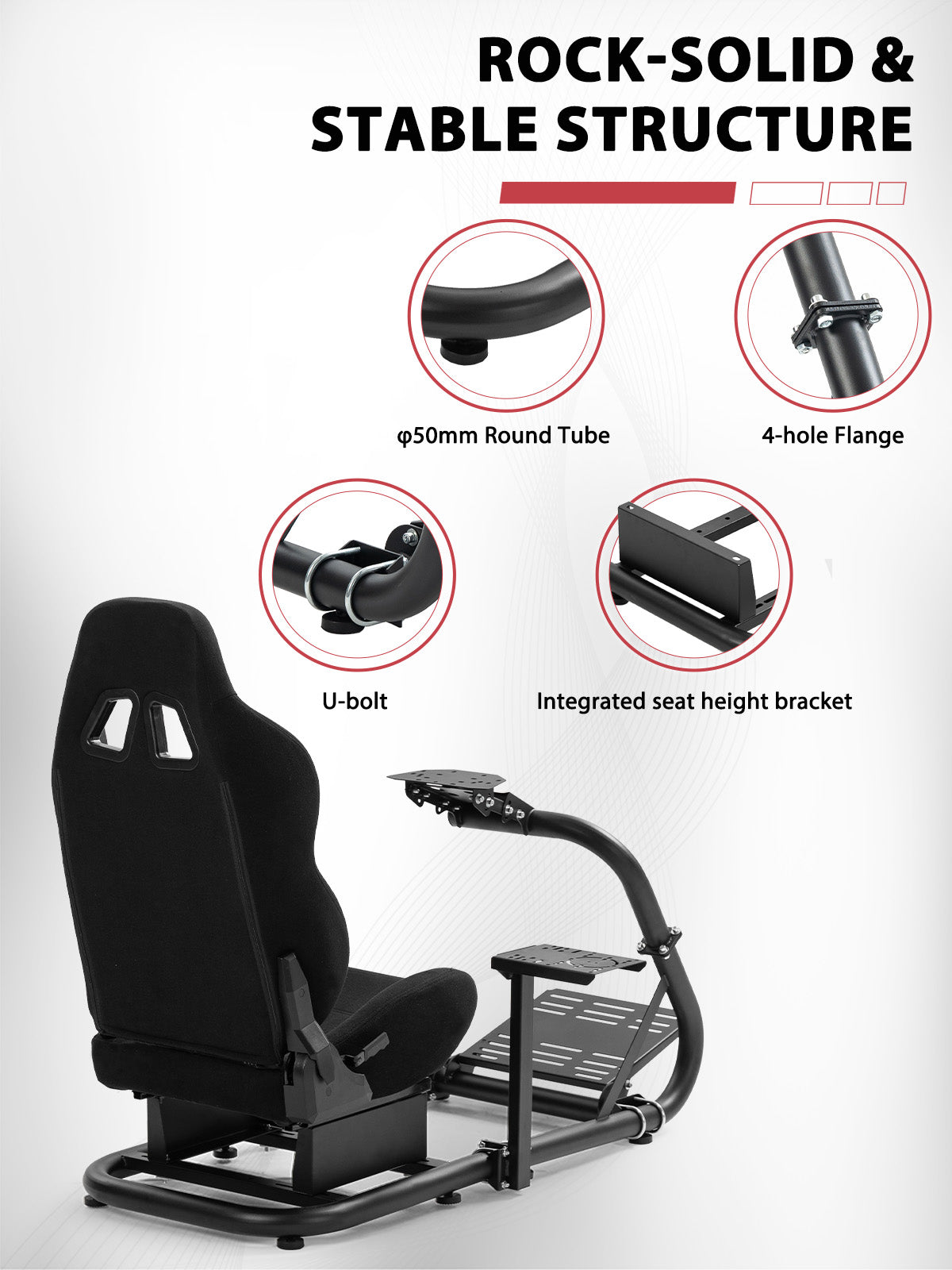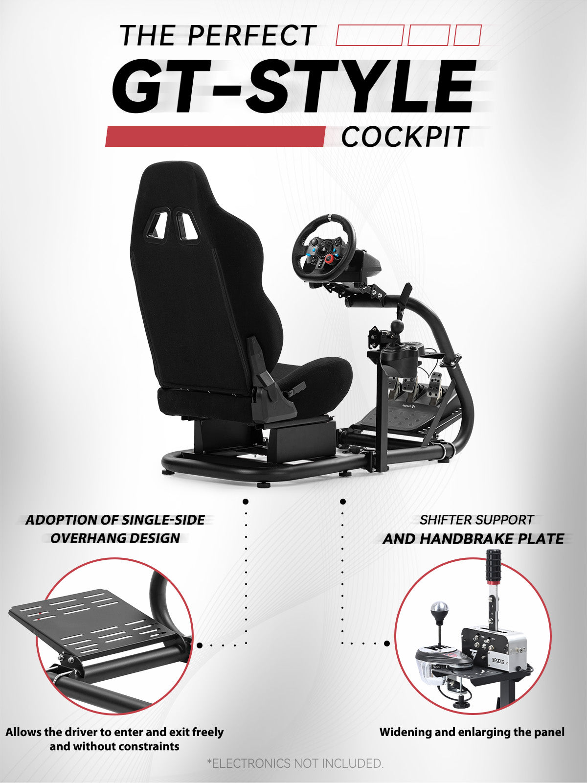 Minneer Sim Racing Cockpit with Black Seat Fit Logitech G29 G920 G923 GPRO Fanatec