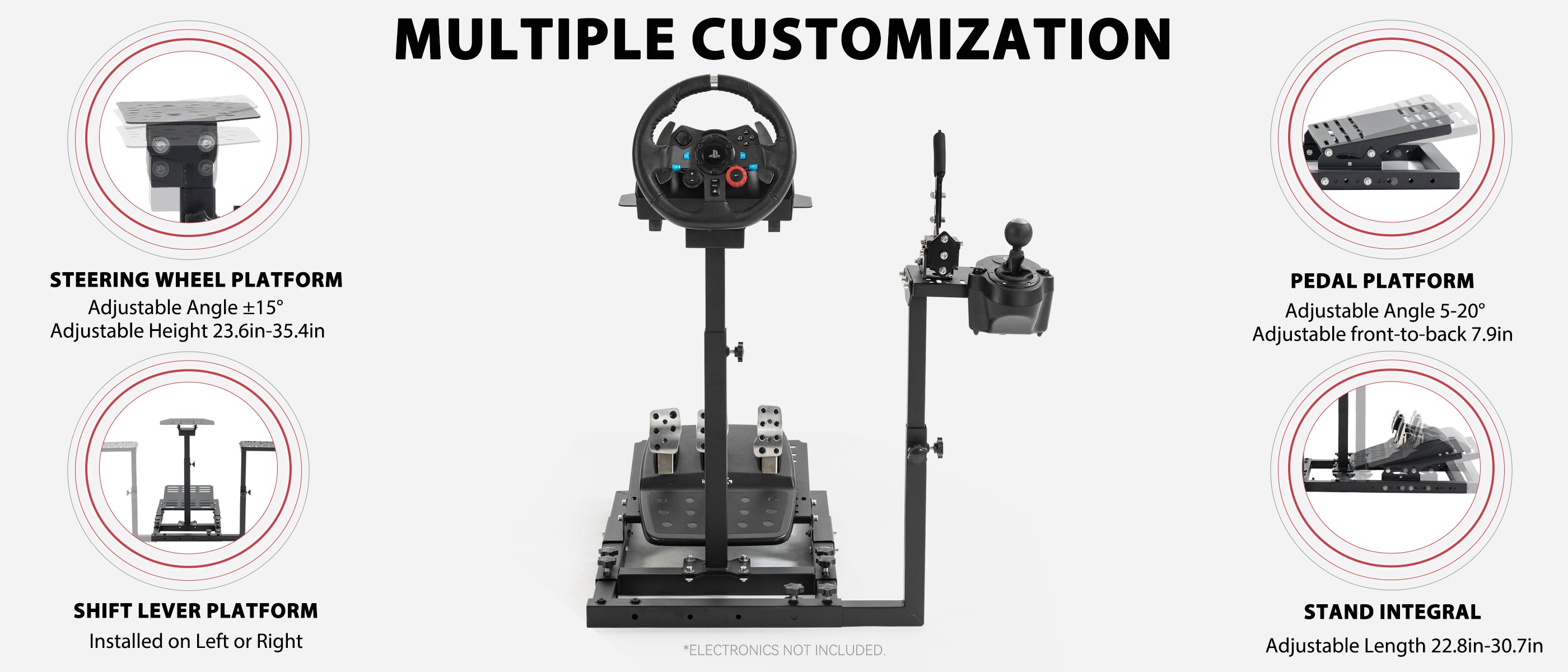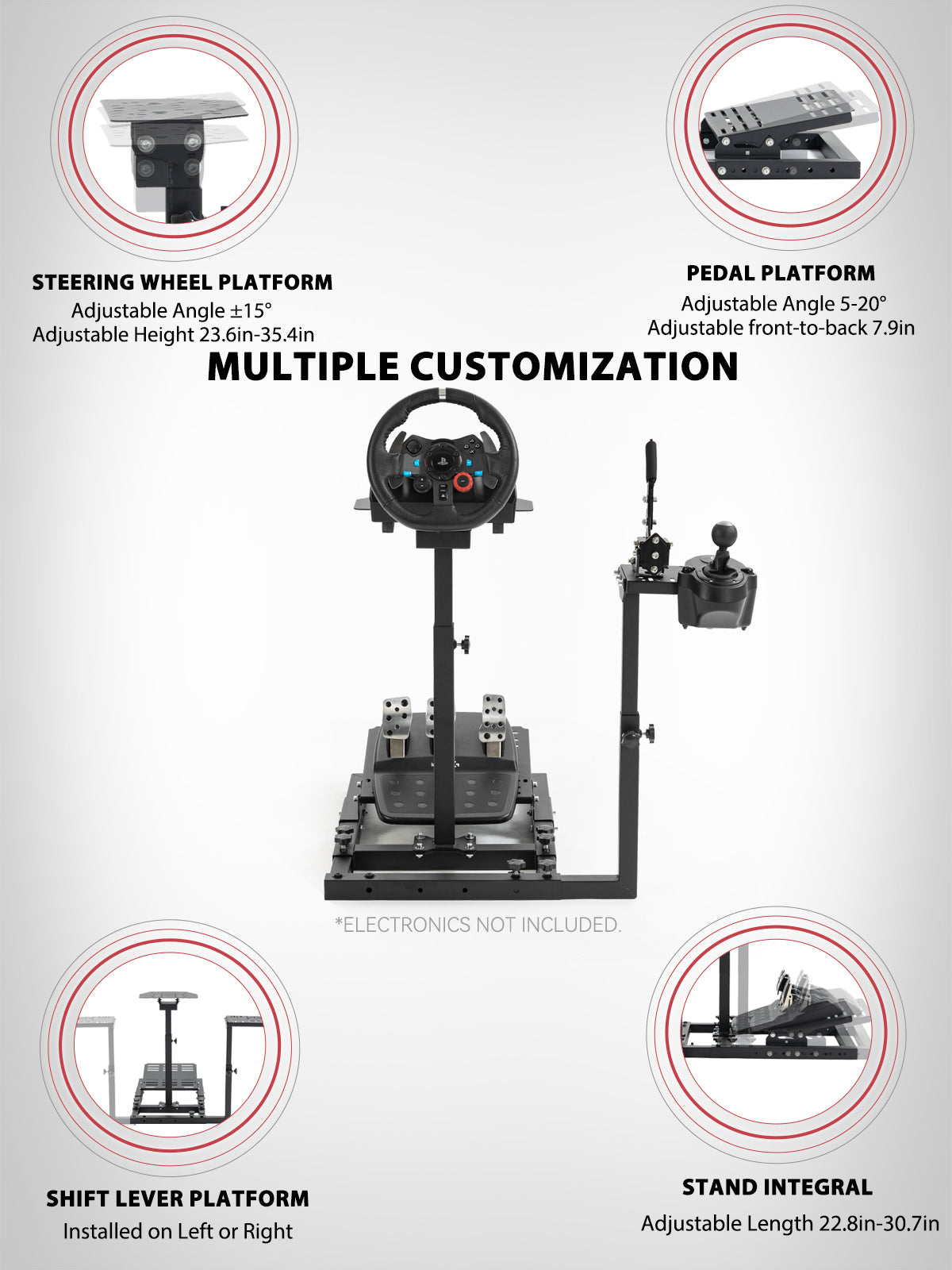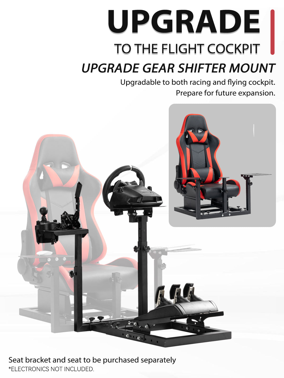 【Upgraded Design】Enhanced from a compact wheel stand to a full simulator cockpit that now supports seat mounting.