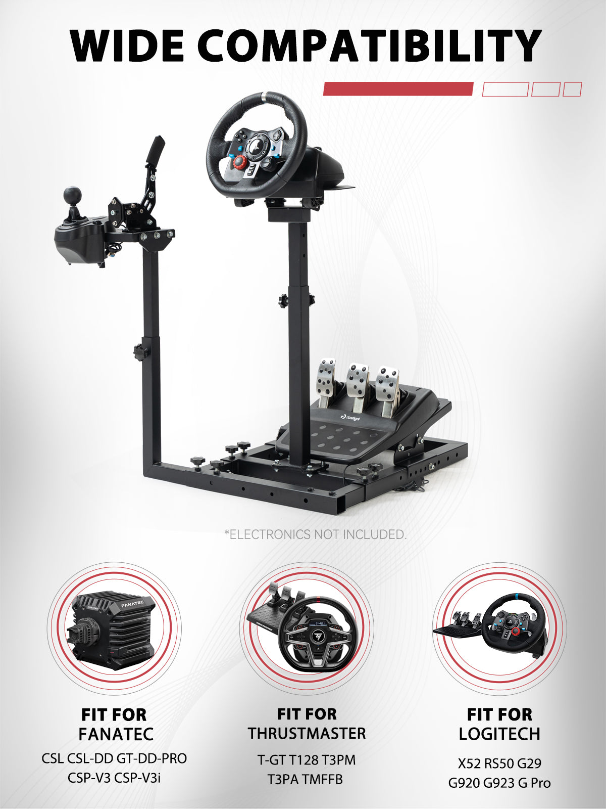 【Wide Compatibility】Compatible with most Logitech (G25–G923) and Thrustmaster (T248PS, T300RS GT, TX Racing Wheel F458, etc.) wheels, pedals, and shifters.