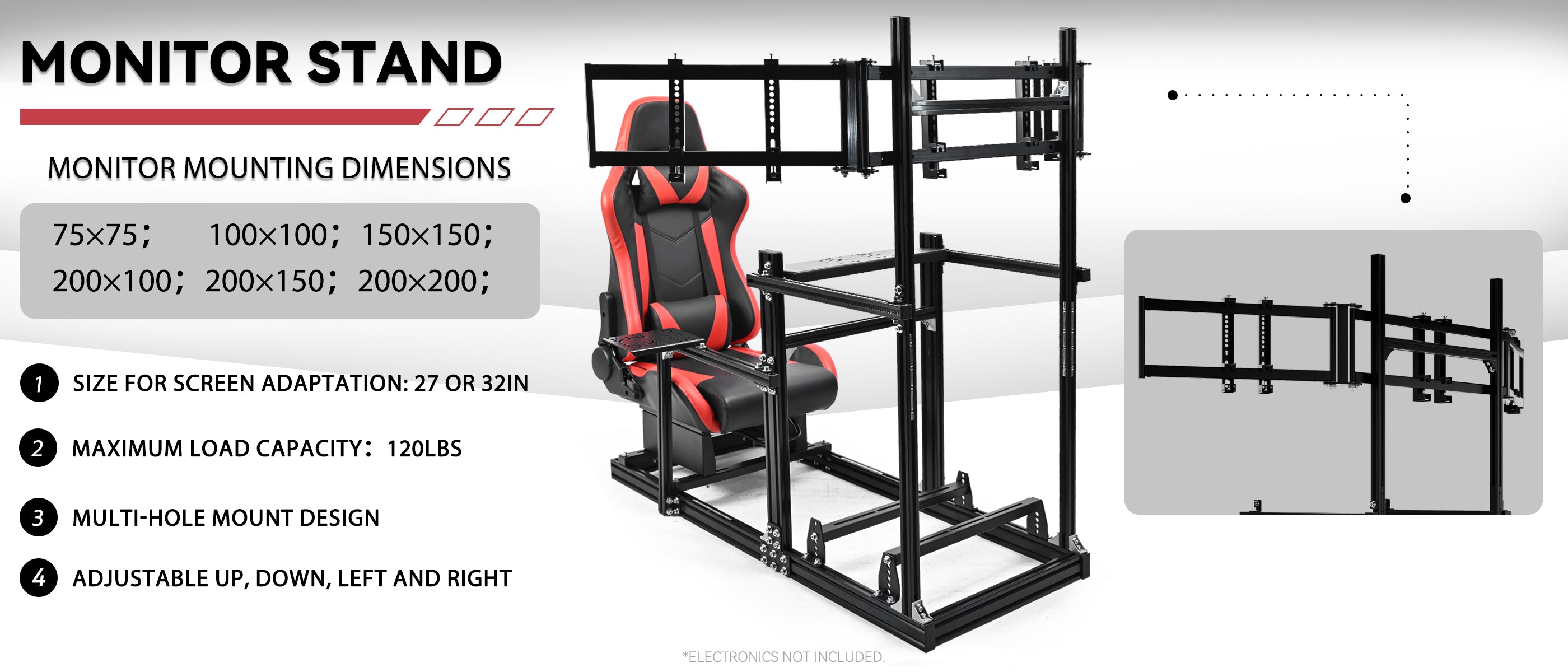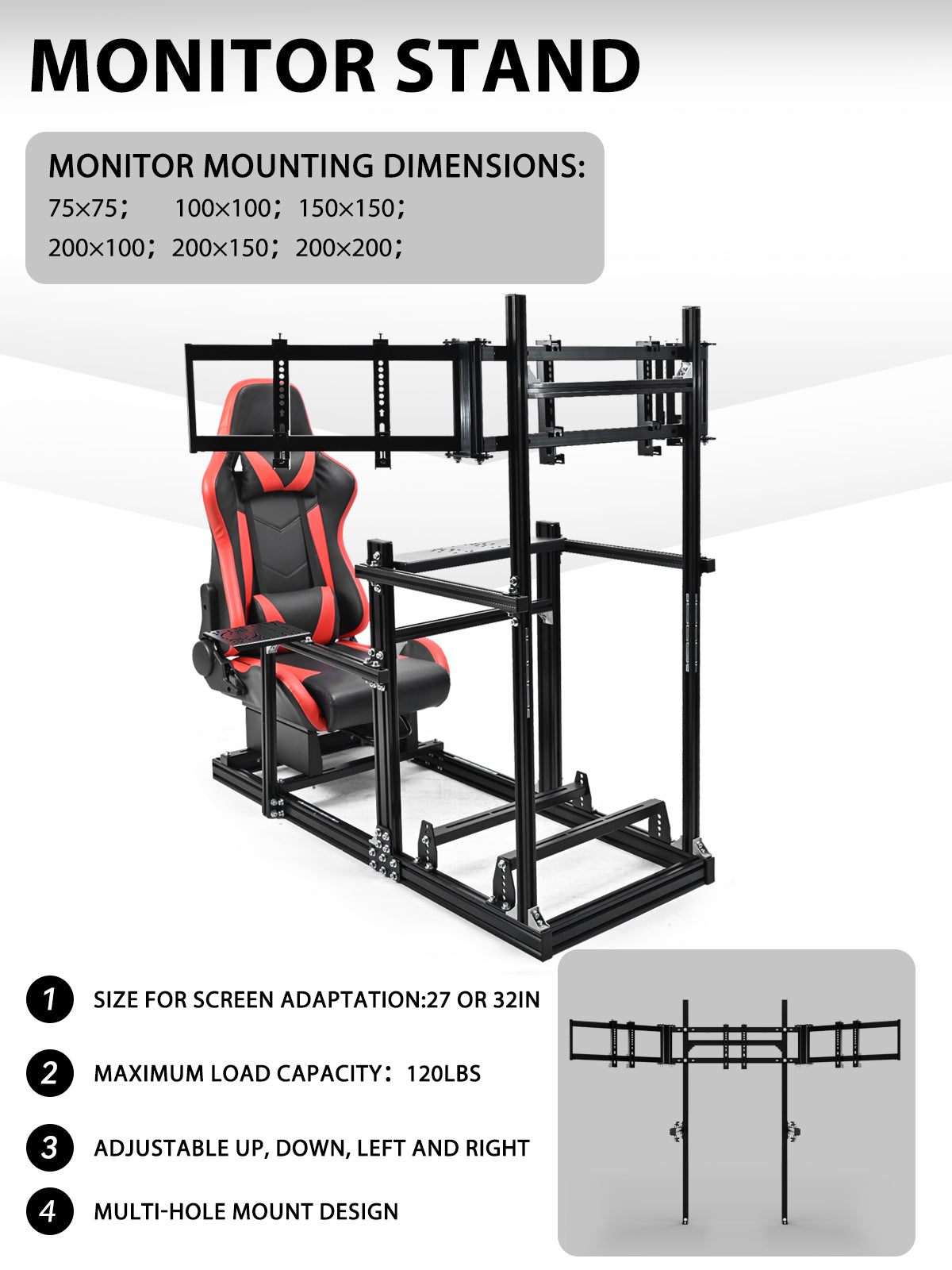 【Immersive display solution】 Extended monitor stand supports 27 or 32inch straight screen120 lbs load capacity, aluminum frame, self-modifying