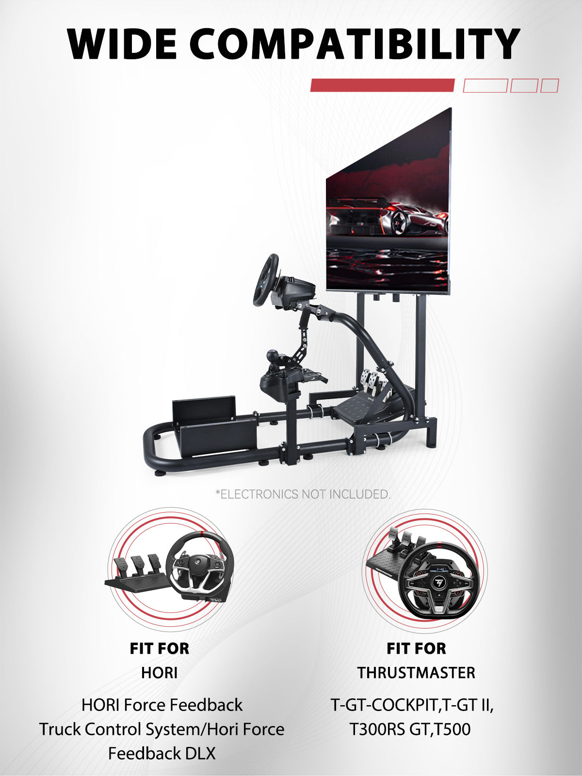 【High Compatibility】The professional analog racing simulator cockpit works with Logitech G25, G27, G29, G920, G923, and Thrustmaster T300RS, as well as most of the Logitech and Thrustmaster series of rollers, pedals, and gear