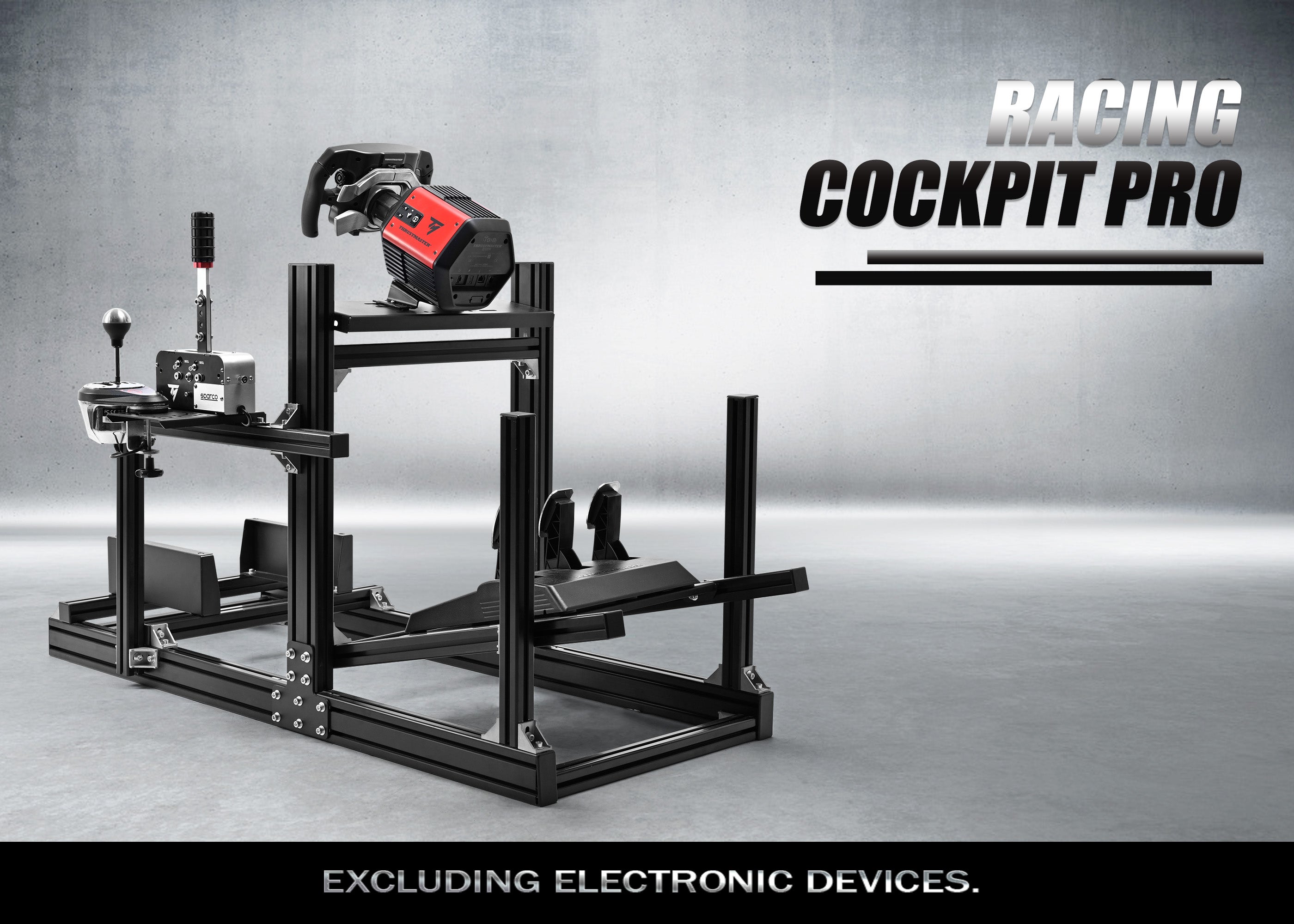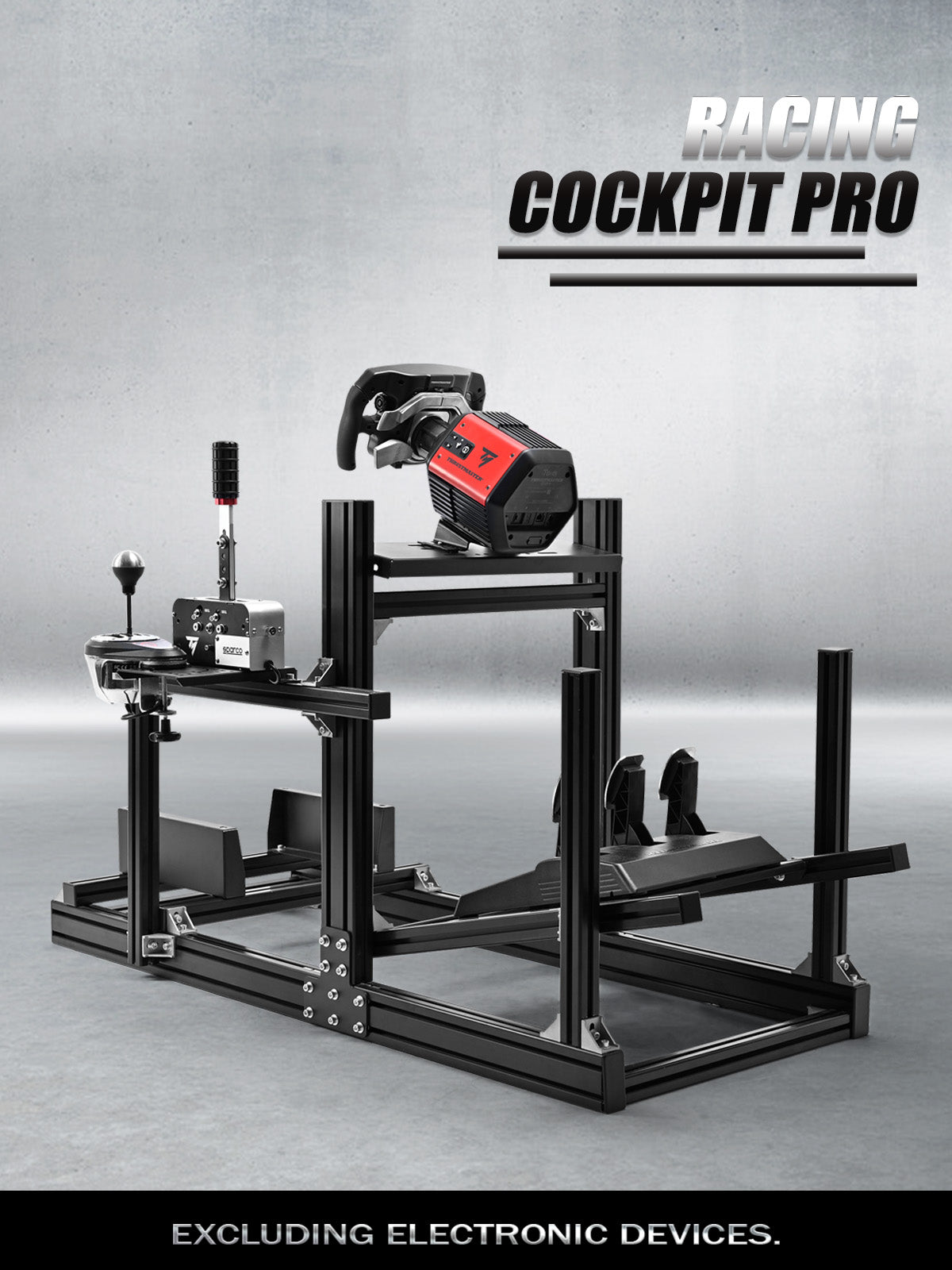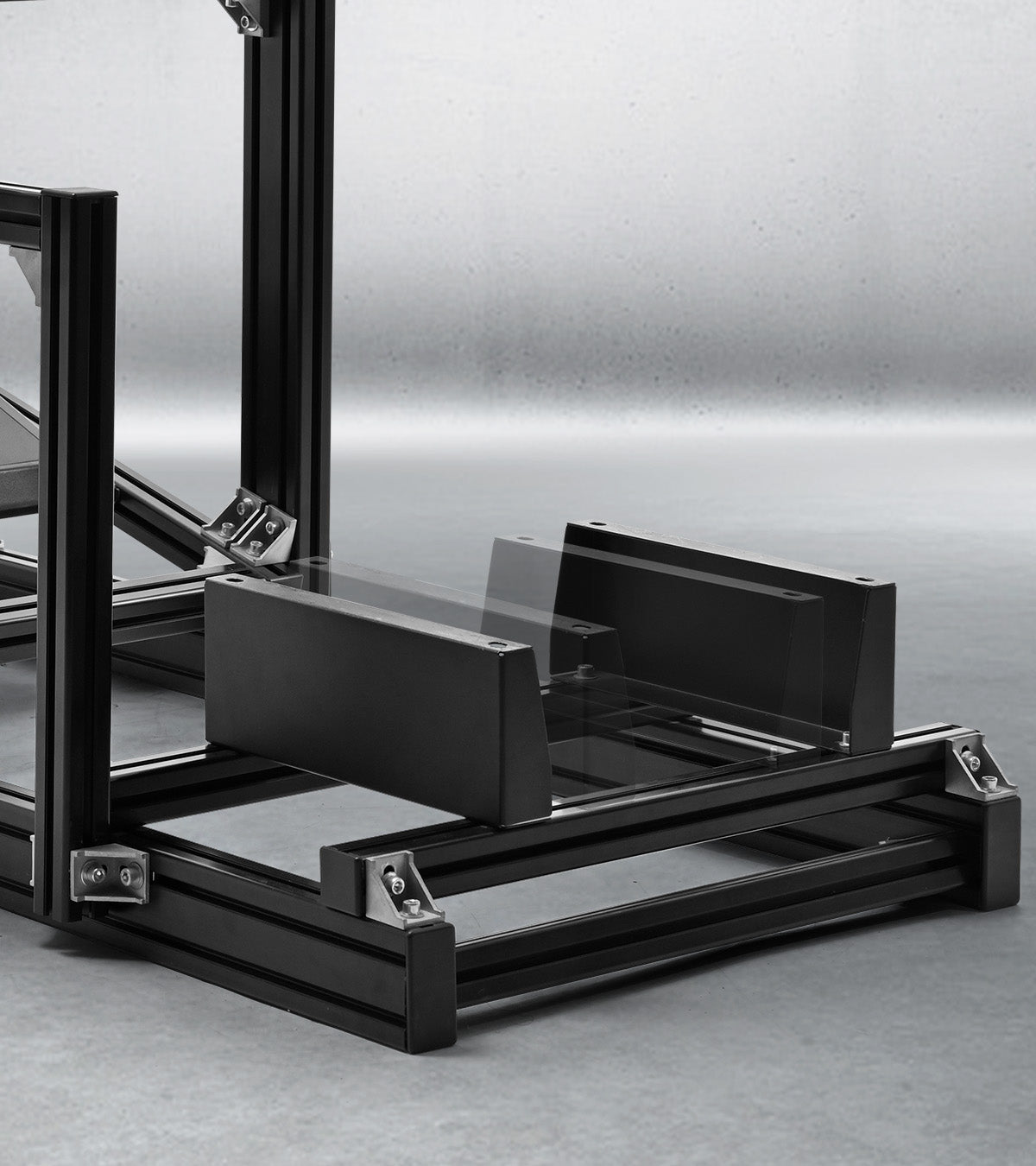 Heavy-duty 4080/4040 European standard aluminium profile frame with heavy-duty aluminium corner joints, built for direct drive steering wheels, provides ultra-stable hardcore support.