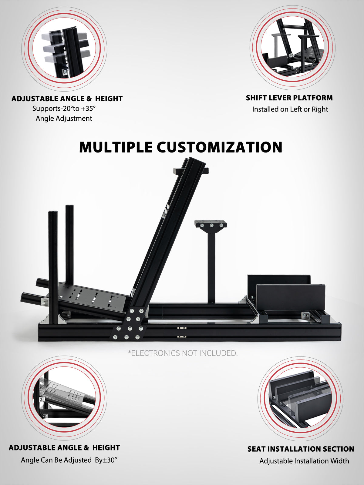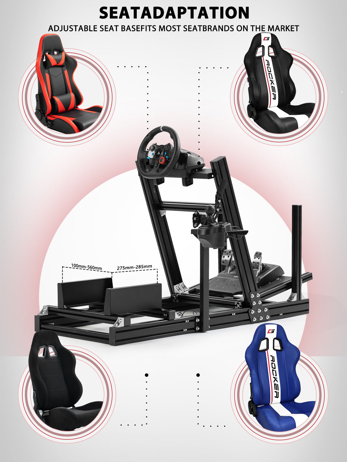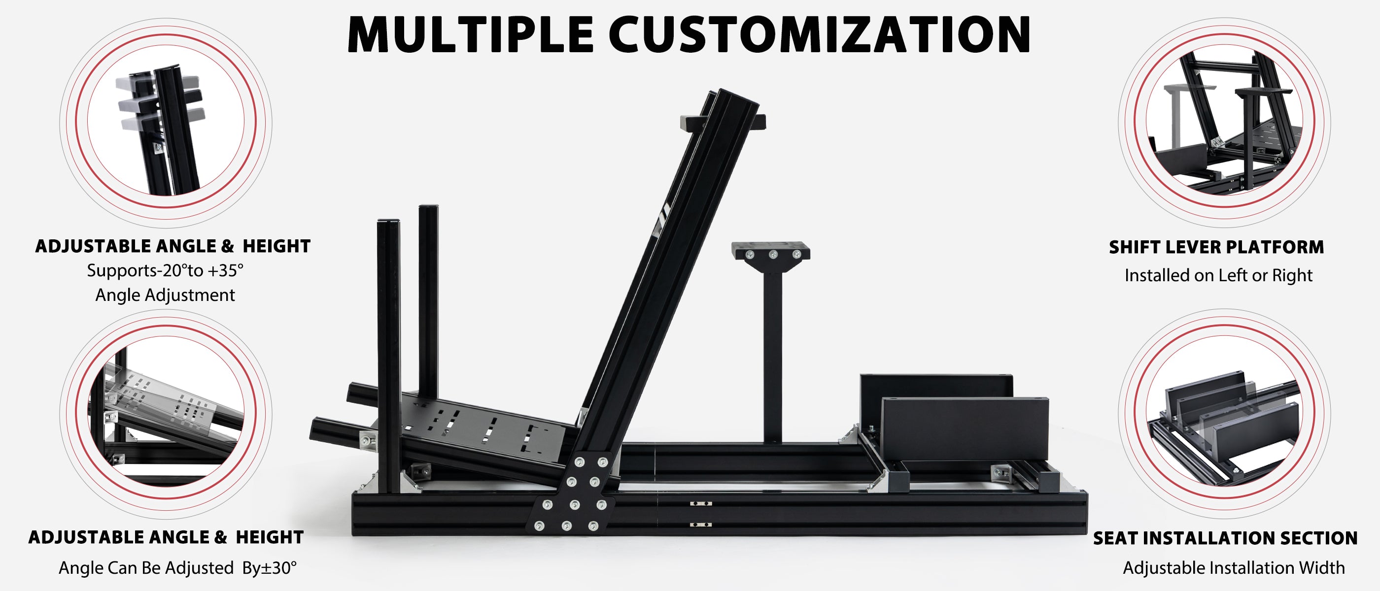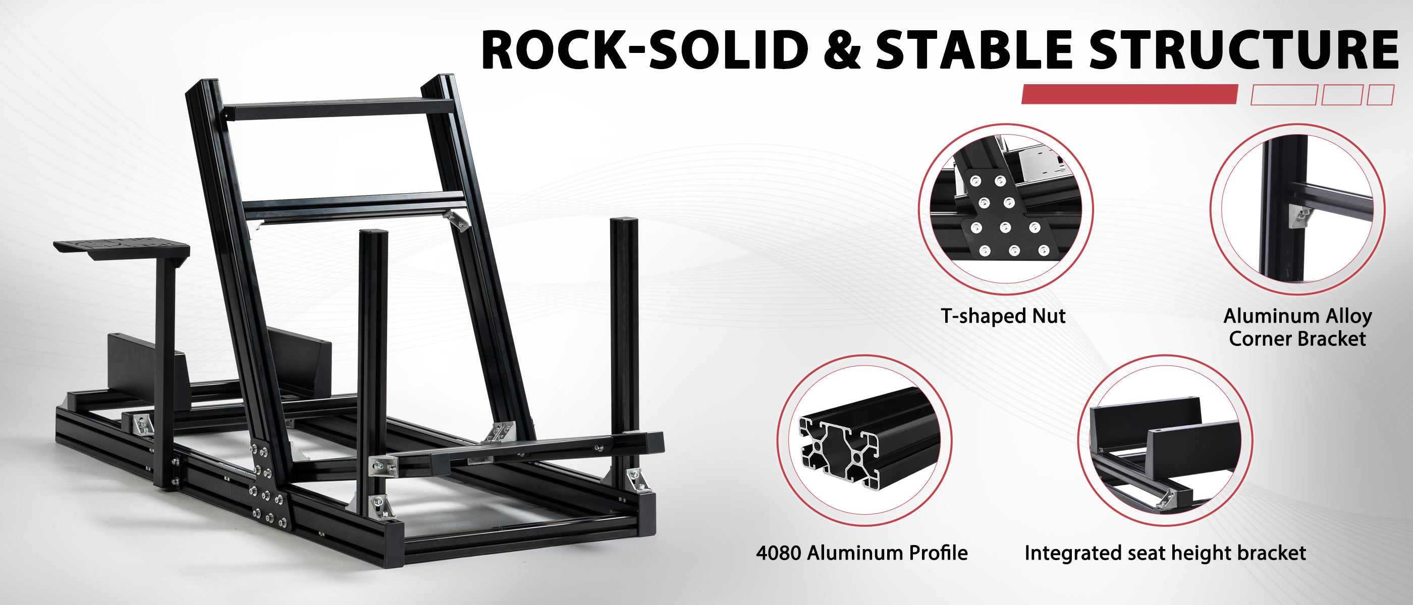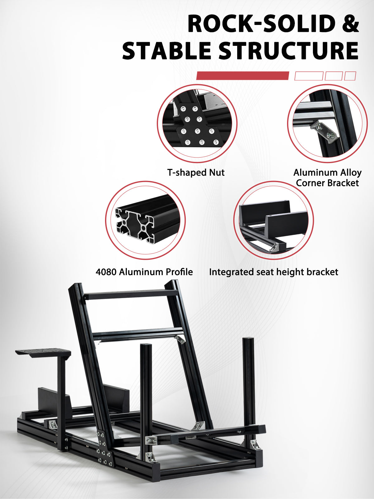 【Stable & Durable Details】 4080 aluminum profiles feature anti-oxidation treatment, paired with reinforced connectors. This design ensures corrosion resistance, easy cleaning, and minimal component wobble during driving—boosting both realism and safety