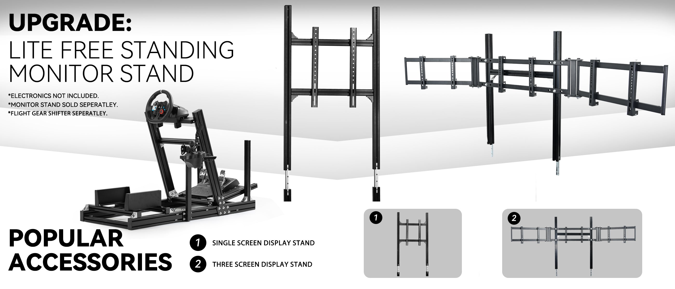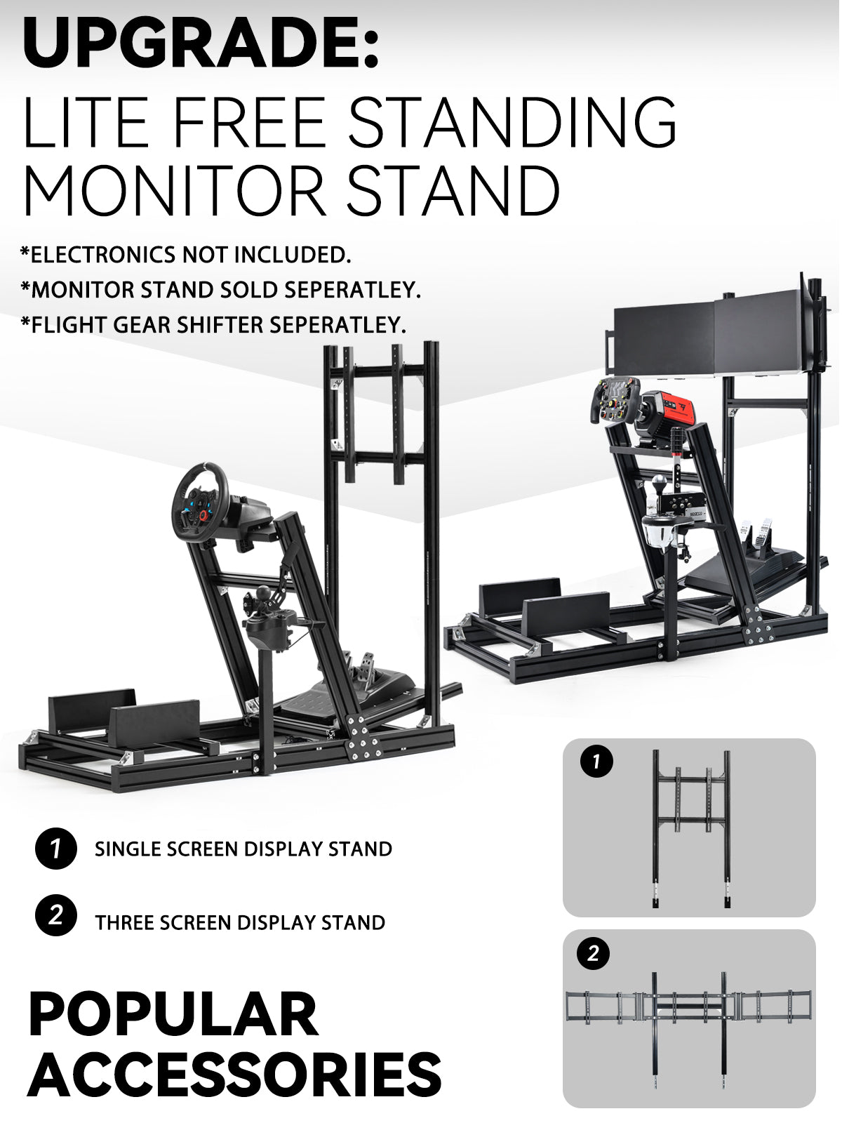 【Upgrade Cockpit】Racing simulation cockpit bracket can be paired with our single-screen or multi-screen monitor stand to fully enhance driving immersion and meet the advanced needs of professional players