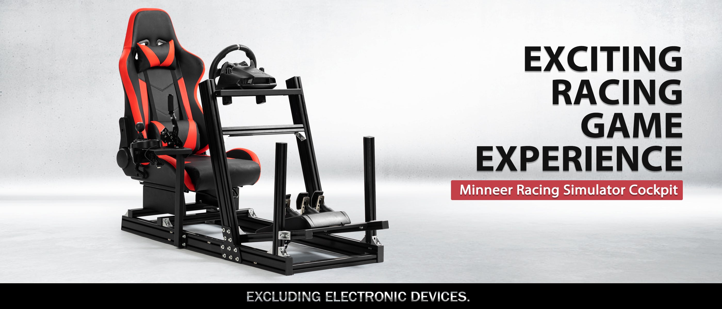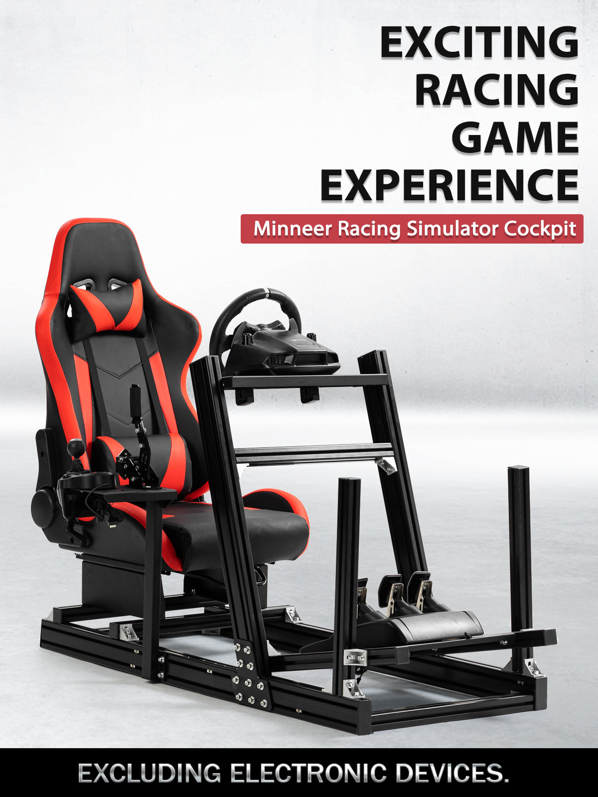 Minneer 4080 Aluminum Profile Racing Simulator Cockpit with Red Seat, Fully Adjustability, Fit for Logitech G920 & G923, Xbox, Thrustmaster T300Rs, Sim Frame 8040, without Steering Wheel, Pedals and Handbrak