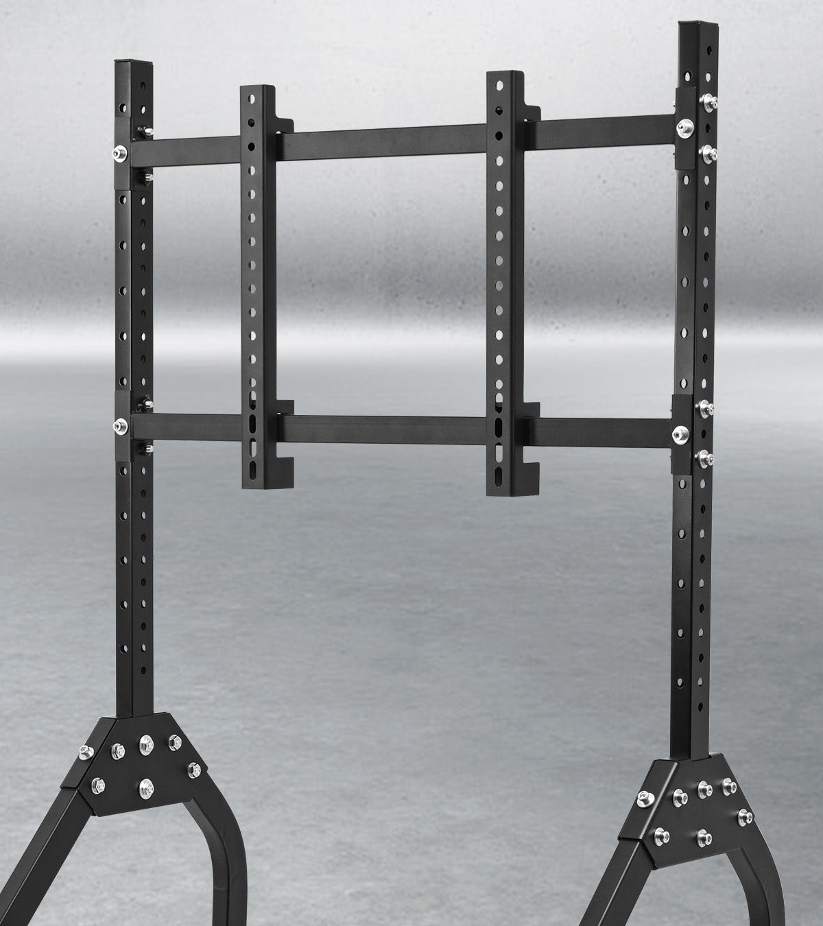 Parallel multi-hole mount: freely adjust width, fit 27-65" monitors with adjustable brackets for a complete setup. Built with 25/40mm steel tubes for stable, shake-free gaming.