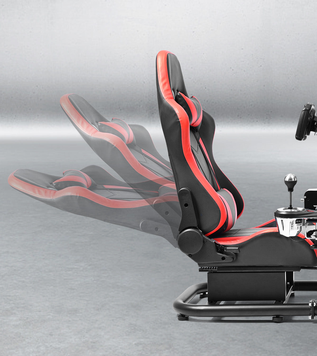 The steering wheel platform can be adjusted at any angle for perfect control in racing, and is compatible with popular steering wheels such as Logitech and Thrustmaster, making it an ideal companion for racing enthusiasts.