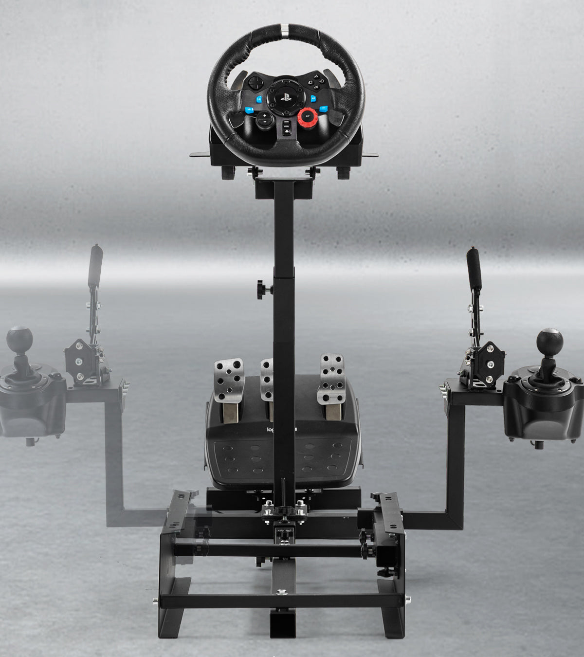 The height Angle of the steering wheel bracket can be adjusted within the range of ±15° to adapt to the needs of intense competition, so that you are more immersive. This steering wheel stand is compatible with most brands of steering wheels and pedals on the market. For example, the Logitech G27, G29, G920, G923, Thrustmaster Fanatec, and most hand brakes and shift levers.