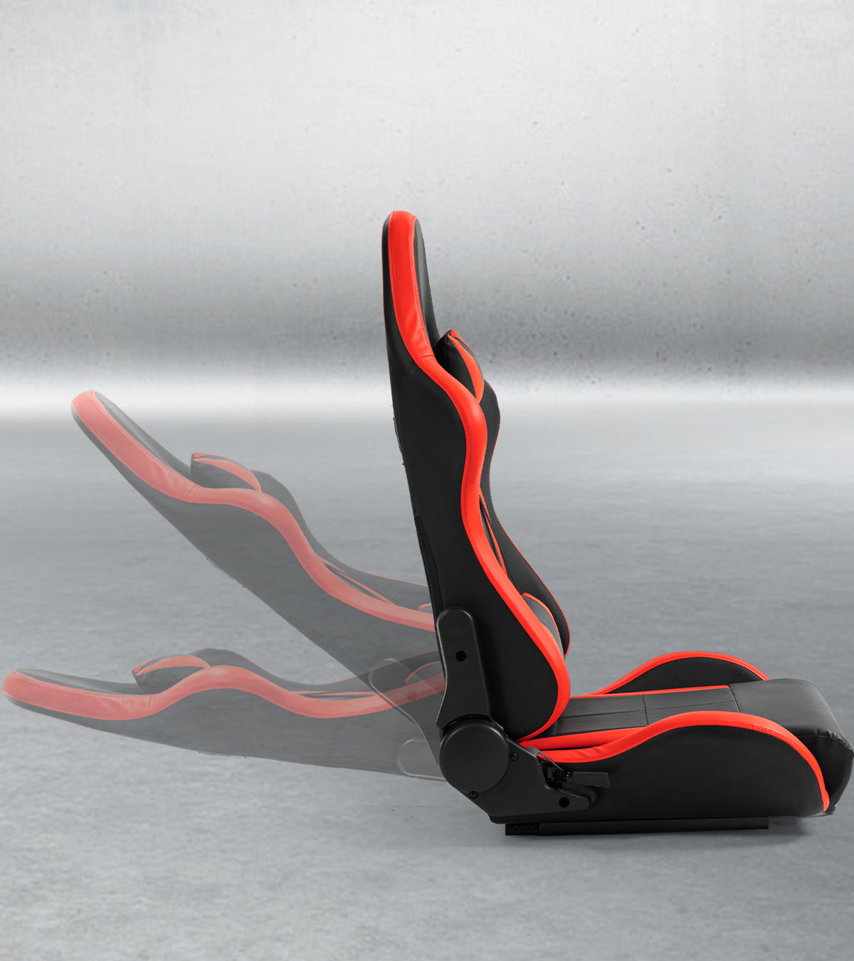 |Support 180°recline|There is an adjustable handle on the bottom of the seat, which can be pulled to move the seat back and forth. The seat backrest can be easily adjusted from 90° to 180°. The ergonomic design ensures the thrill of racing and relieves the tension at the end of the day.