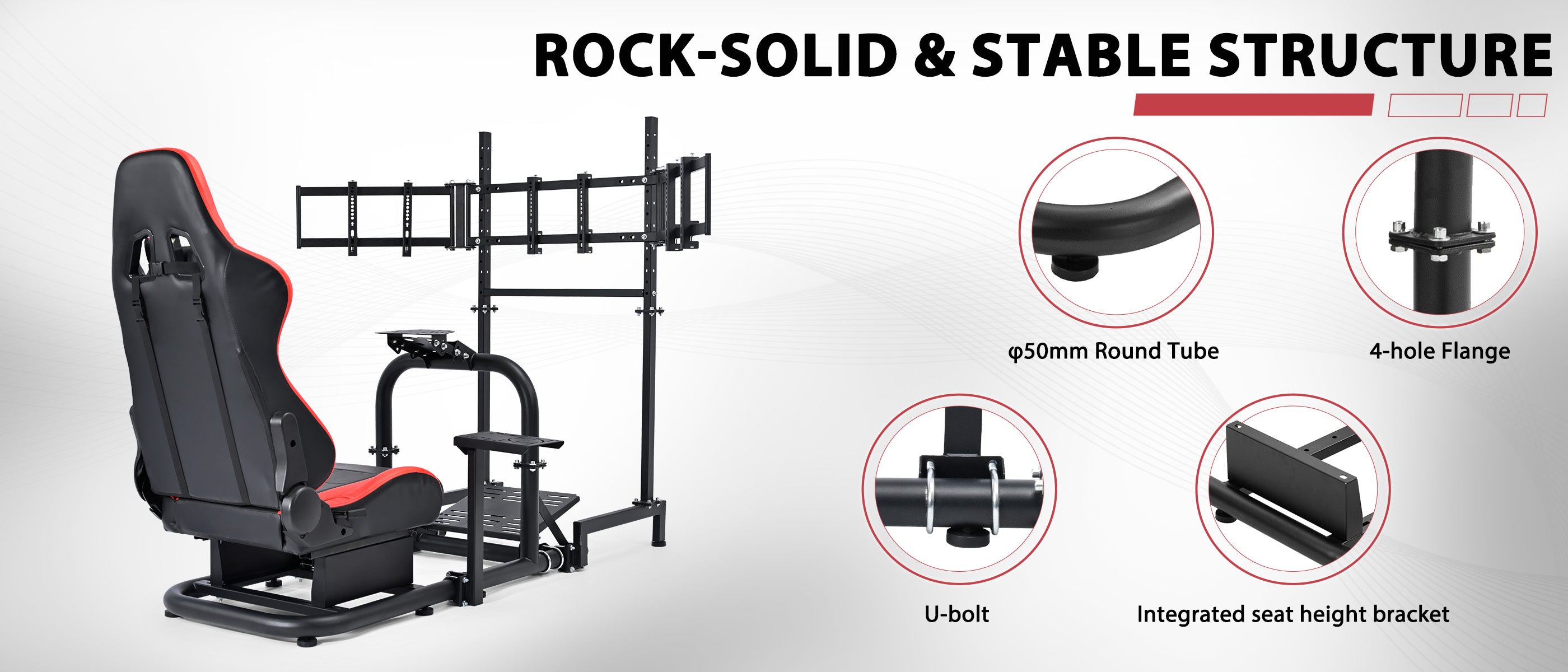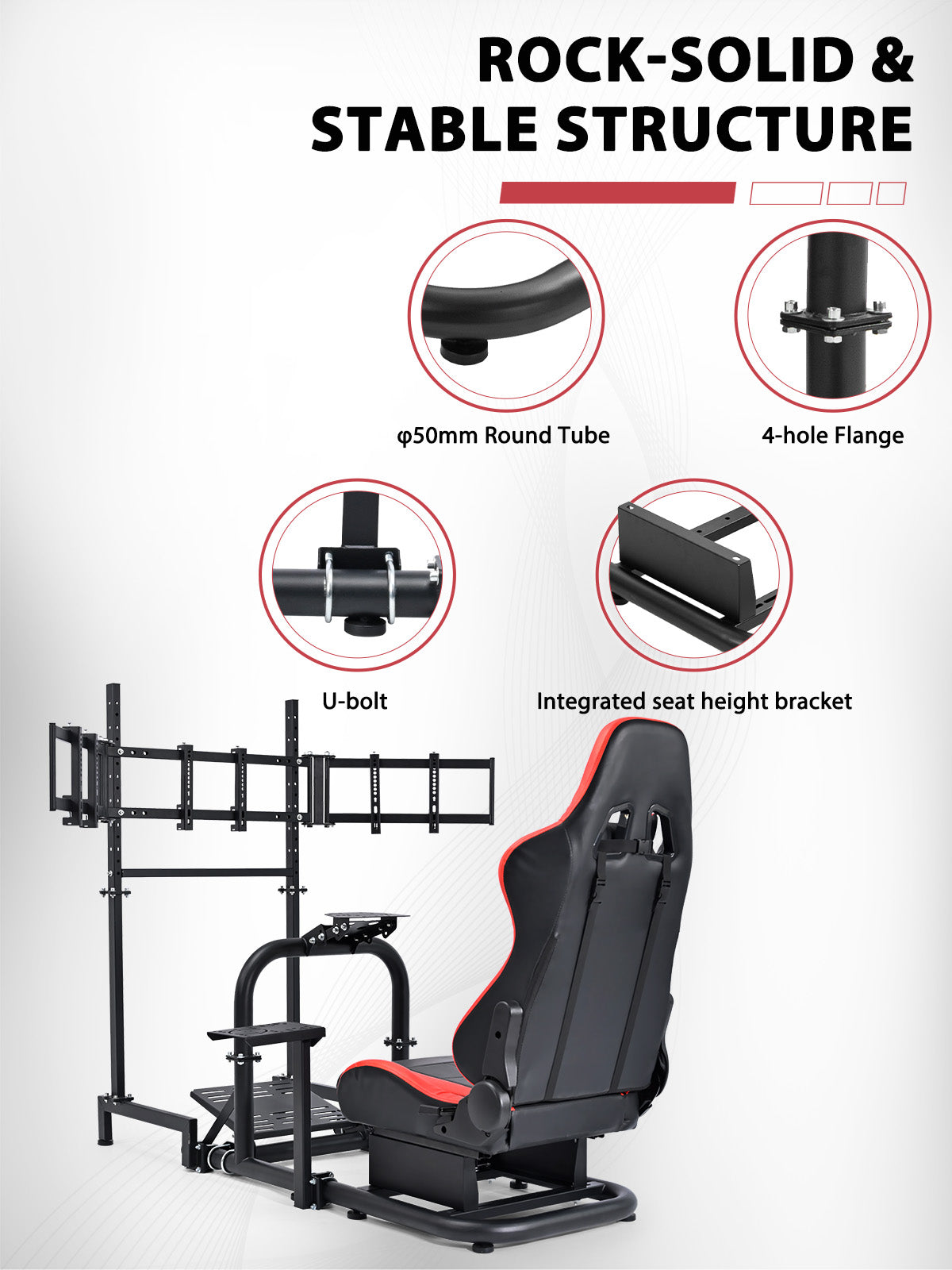 【Stable and Durable Structure】This cockpit stand weighs is flanged for excellent stability. The vertical structure ensures reliable support and is ideal for professional simulation racing or casual gaming