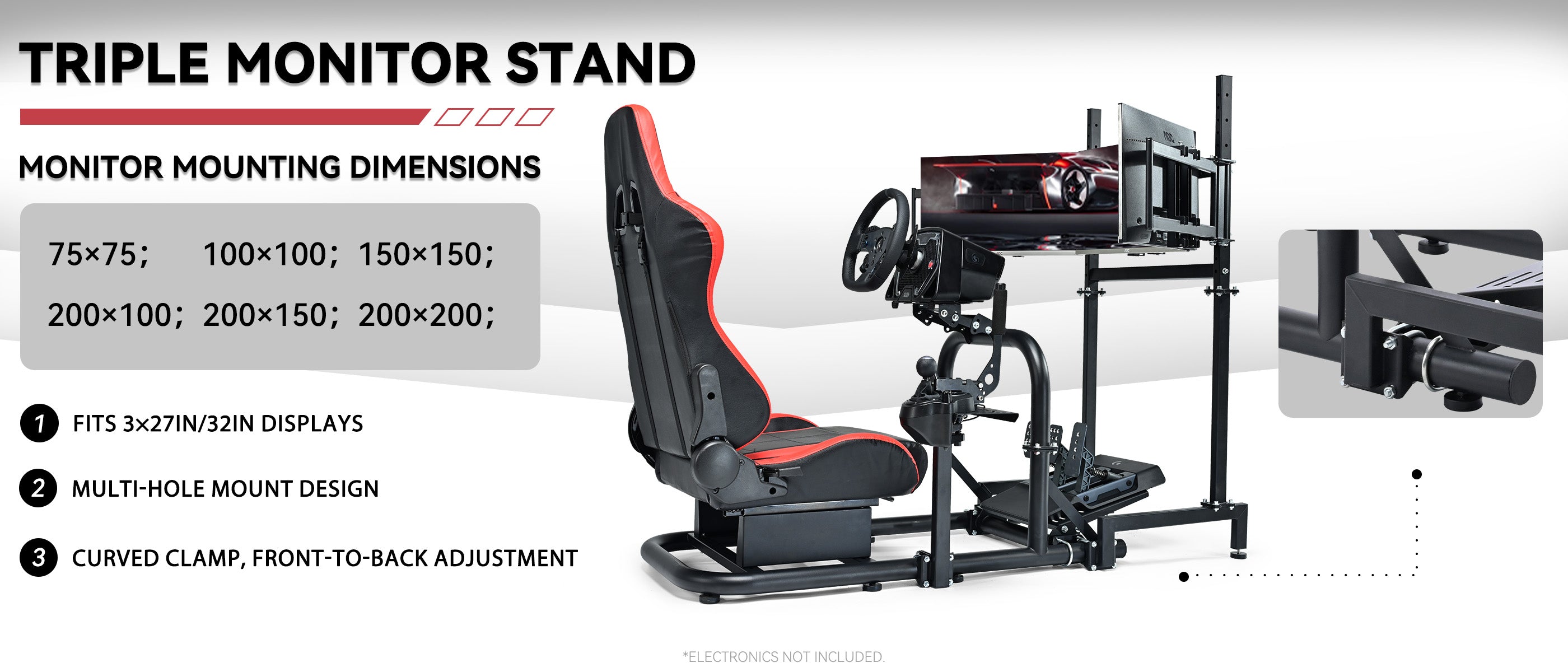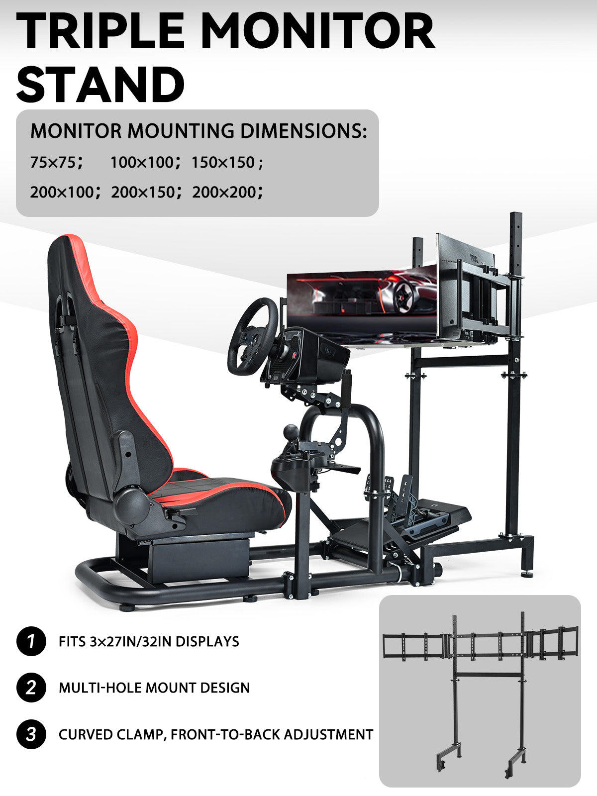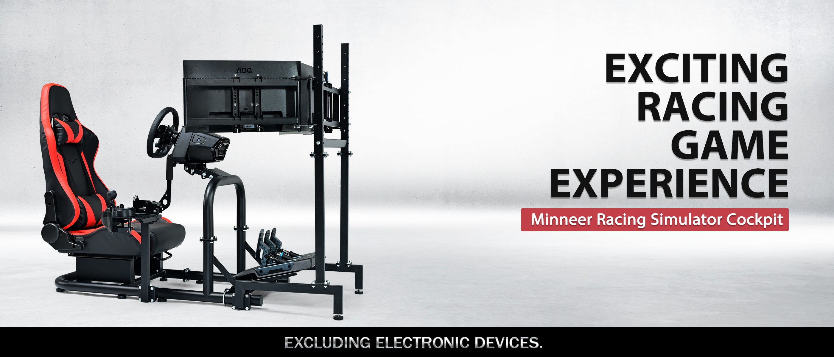 Minneer Racing Sim Cockpit with Triple Monitor Stand and Red Seat, Wide Compatibility, Fit for Logitech,Thrustmaster, Fanatec G29 G923 T248, Not Include Steering Wheel,Pedals,Handbrake